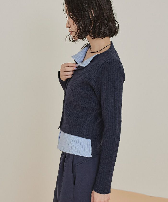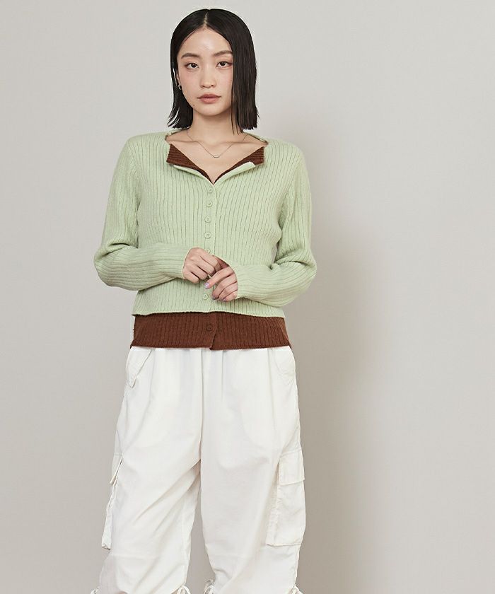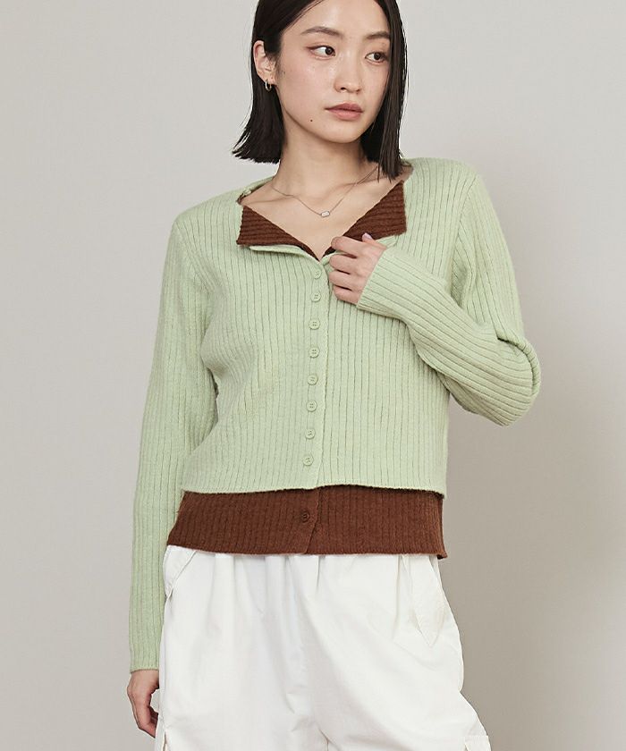 レイヤード配色ニットカーディガン【miette ミエット】