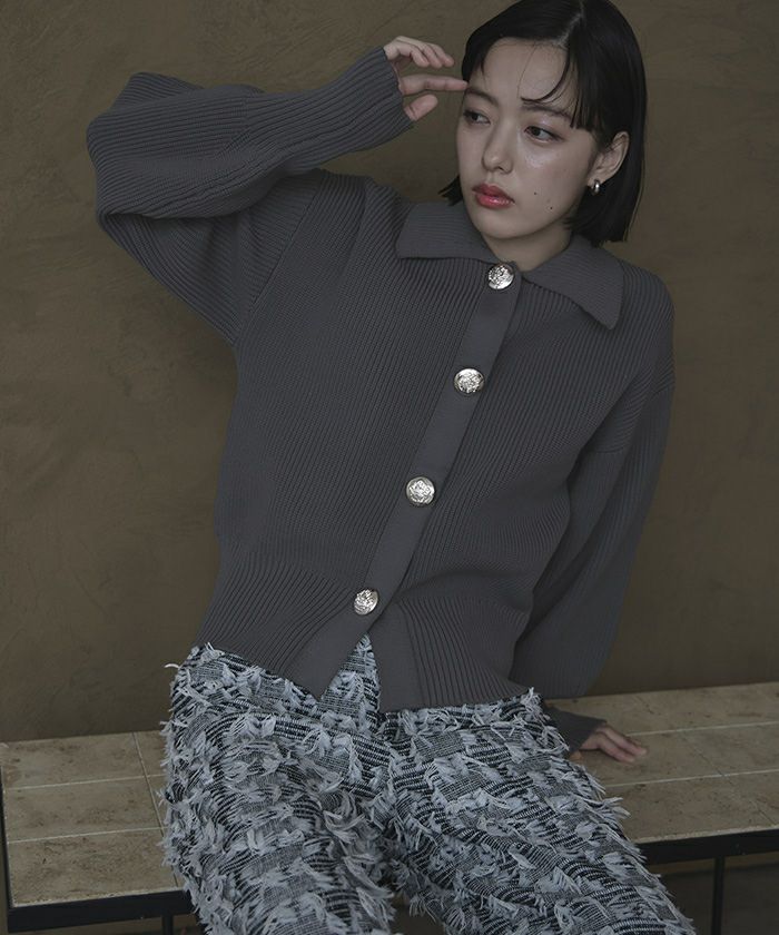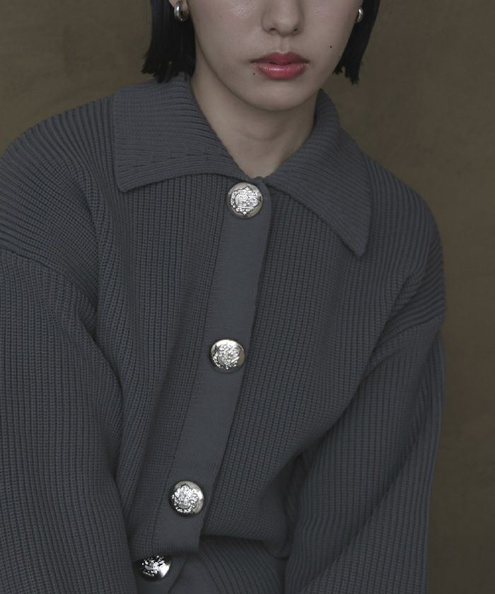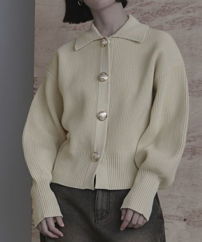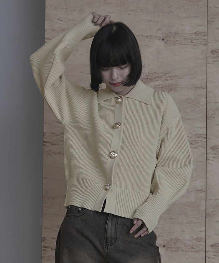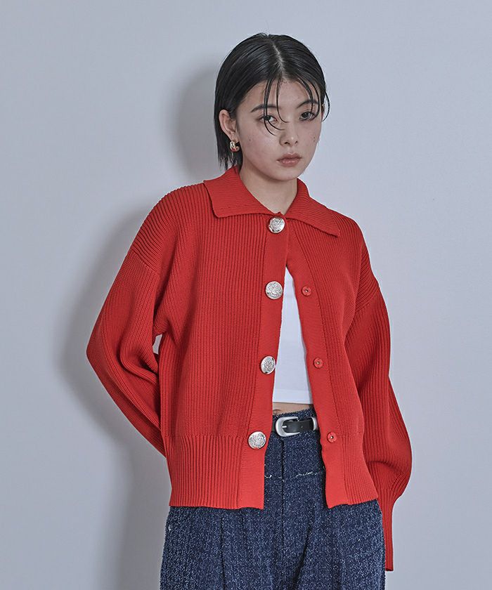 BIGボタン襟付きニットカーディガン【miette ミエット】
