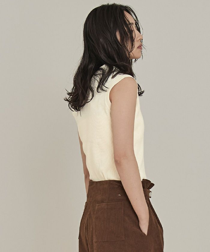 ・トレンド感のあるコンパクトなカーディガンとノースリーブのポロニットのセットアイテム