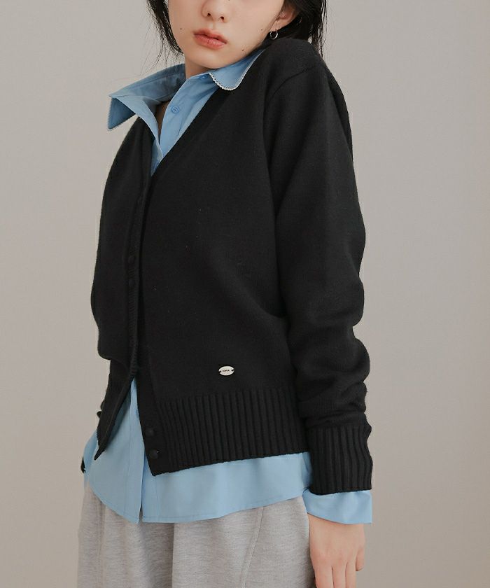 くるみボタンVネックニットカーディガン【miette ミエット】