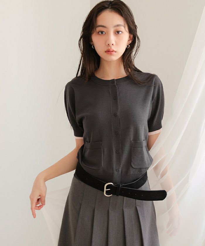袖配色サマーニット半袖カーディガン【miette ミエット】【メール便可/100】