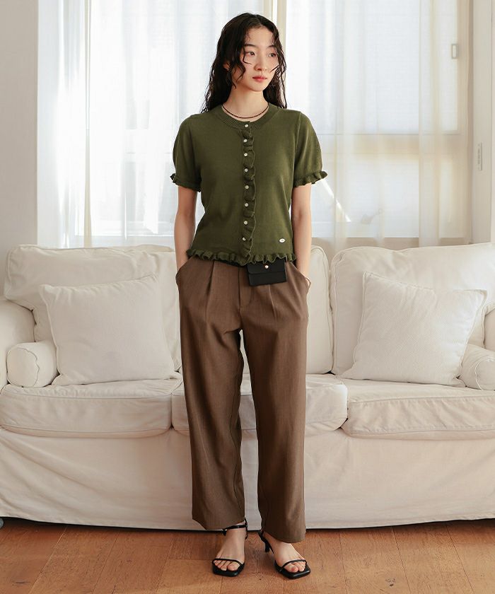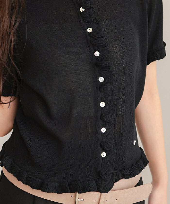 フリルデザイン半袖ニットカーディガン【miette ミエット】【メール便可/100】