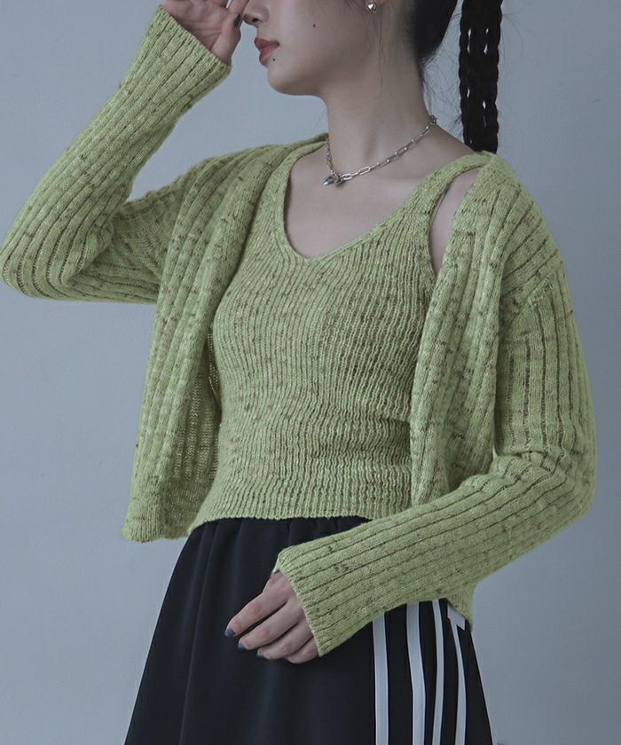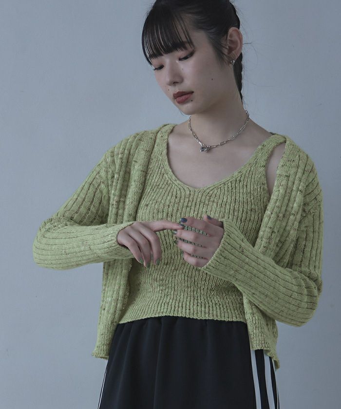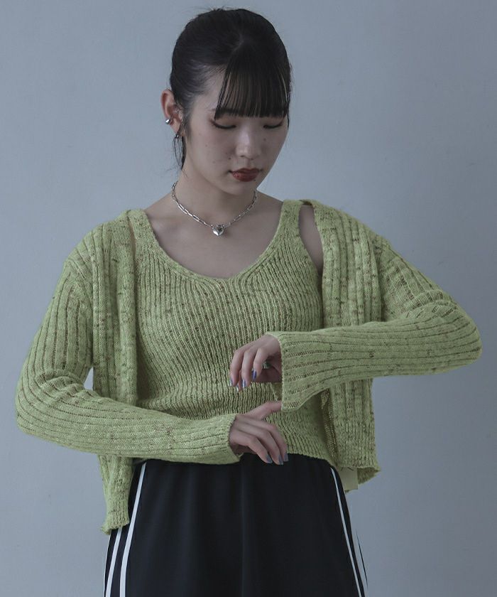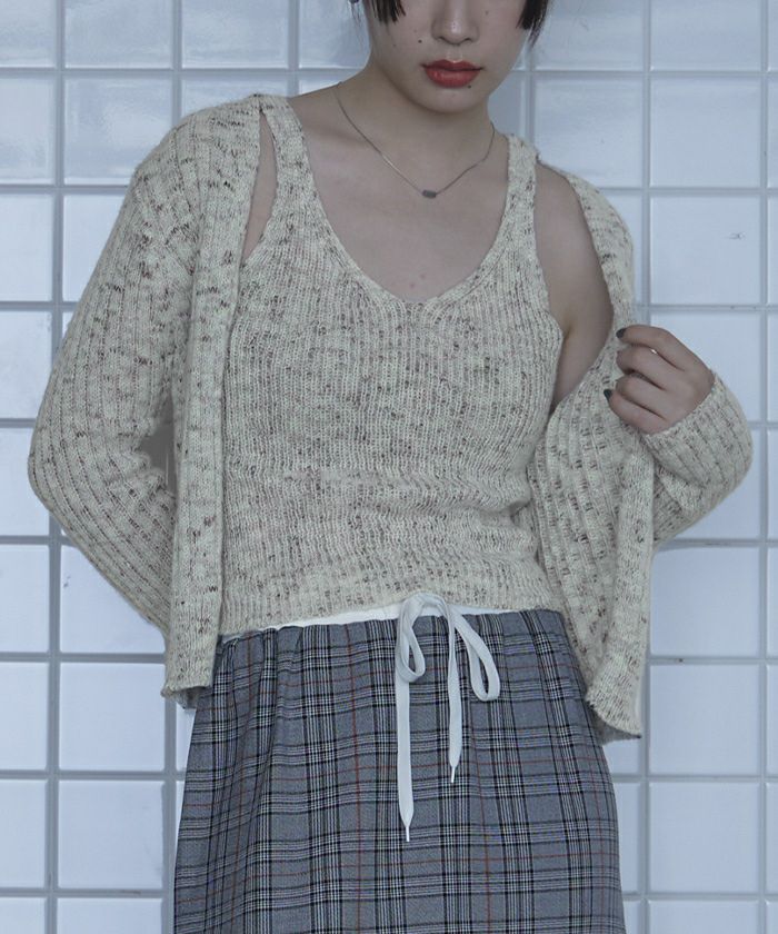 他の画像を見る 【miette】【期間限定★SALE】 ミックスヤーンインナータンクセットニットカーディガン【miette ミエット】 通常価格 ¥ 4,389 価格 ¥ 2,194 税込 在庫切れ お気に入りに登録する