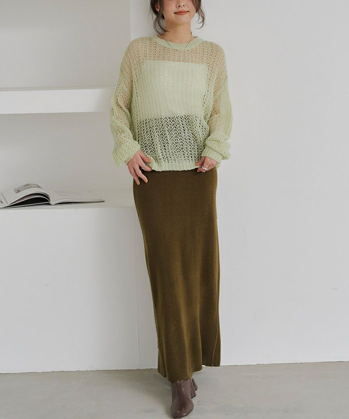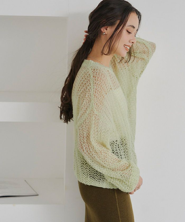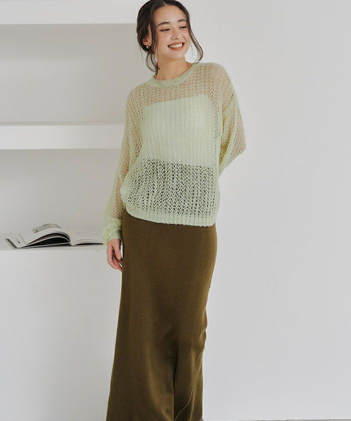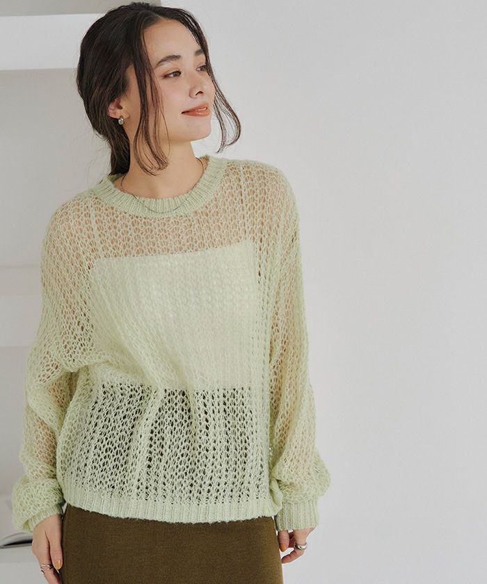 ・透け感のある編み地が旬のスタイルを楽しめるローゲージニットトップス。