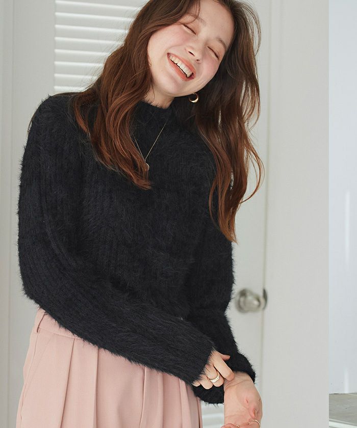 ・ふわっとしたフェザー感とプチハイネックで程良いリブが可愛いニット
