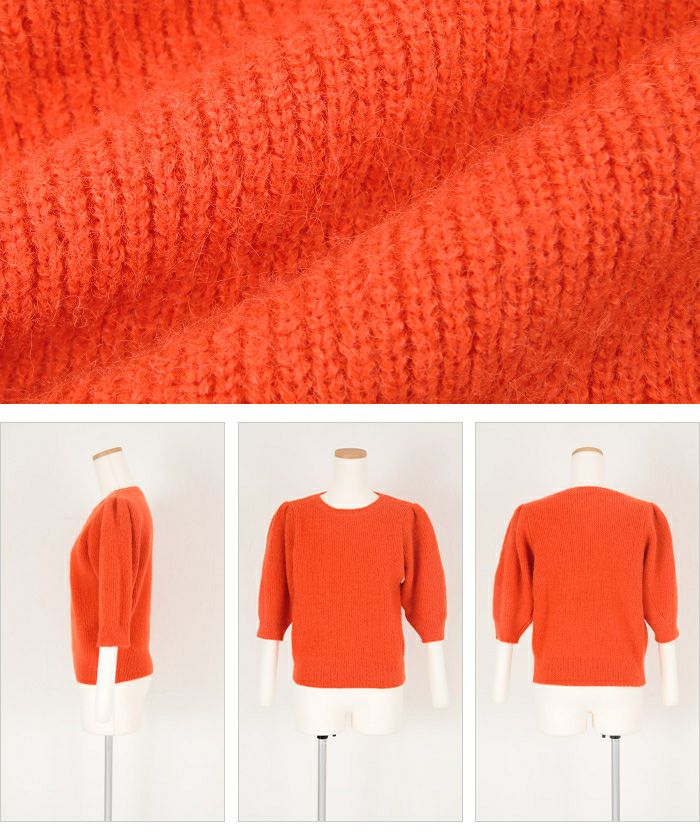 162cm普段LサイズでオレンジMを購入。 思ったよりも厚手でしたが、パフスリーブが可愛くゆったりと着られます。一覧の画像通りのオレンジ色で、真冬は差し色になり気に入りました。