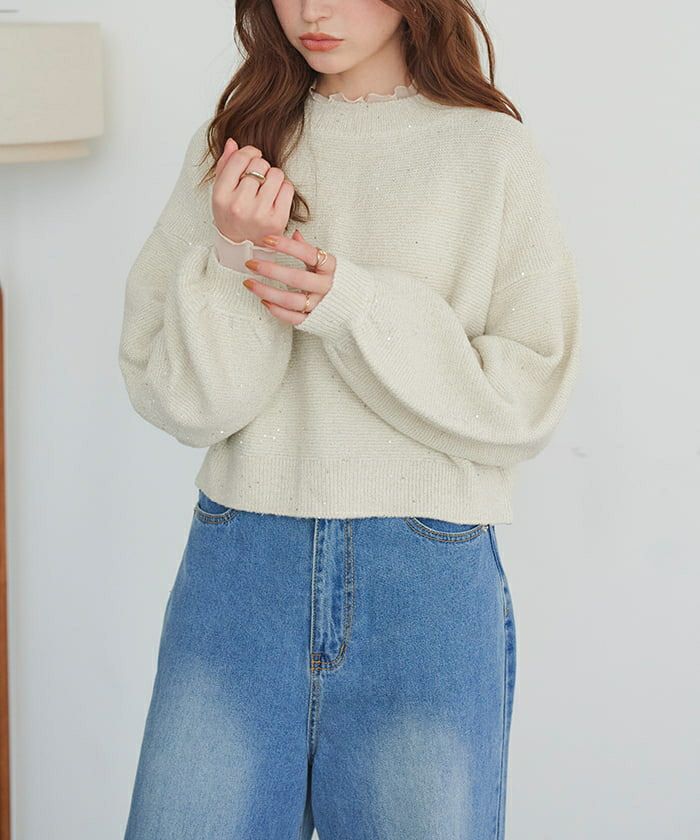 スパンコールショートニット