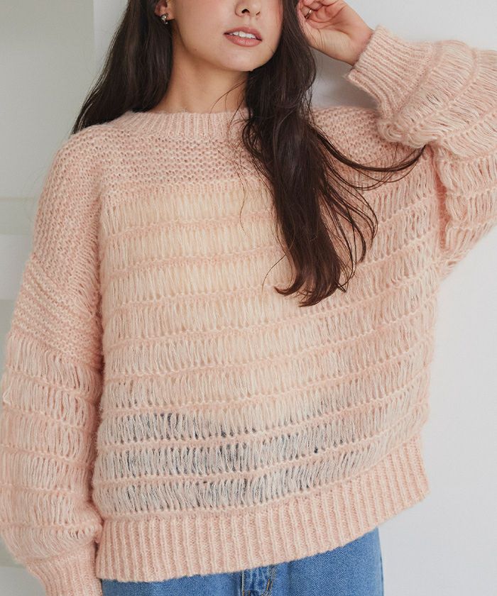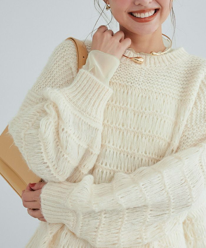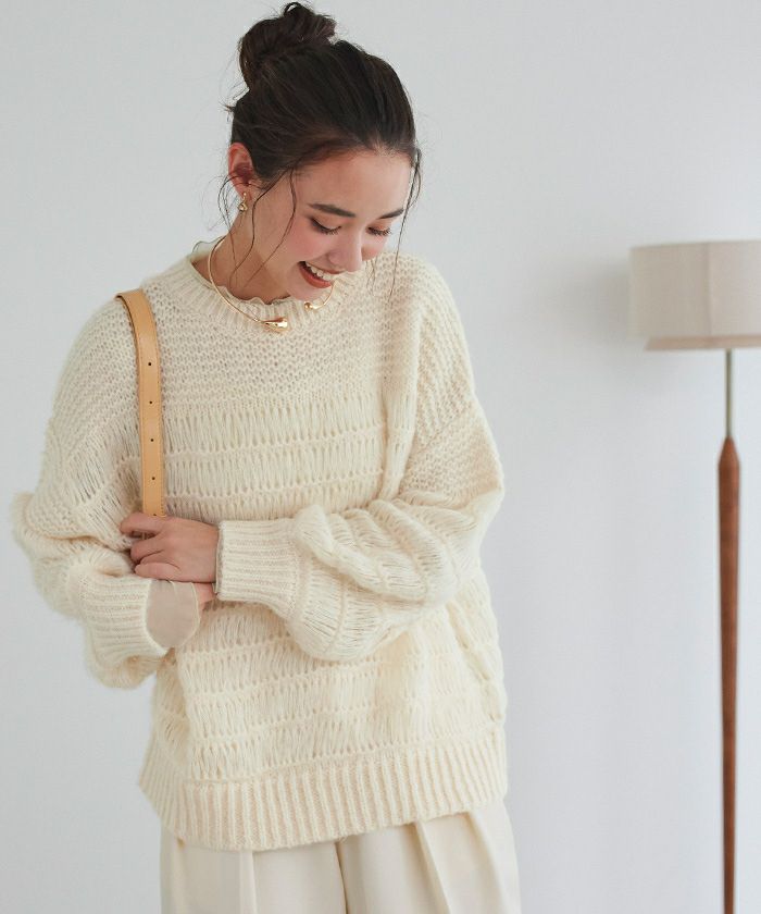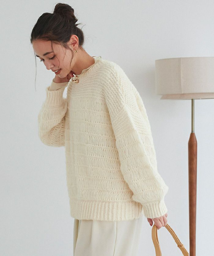 ・ウール混でふんわりとした素材感が女性らしいニットプルオーバー