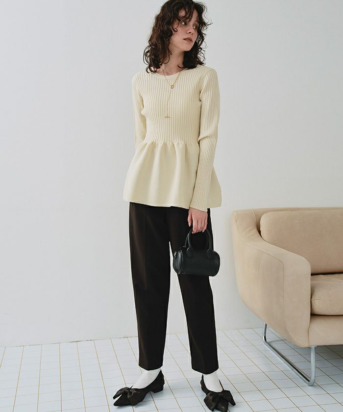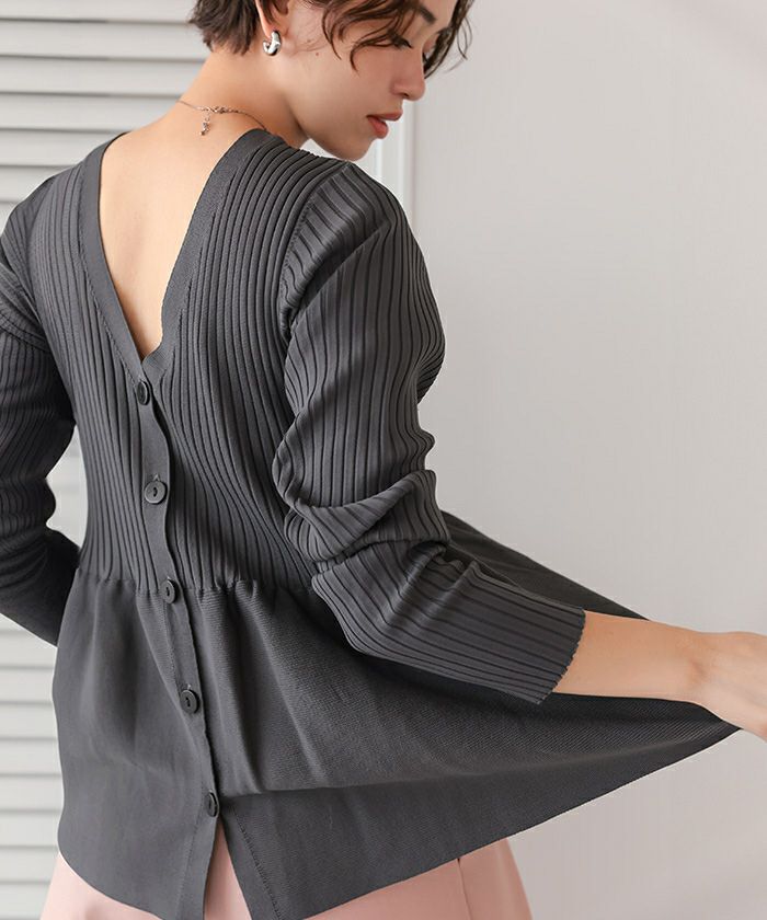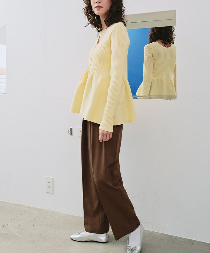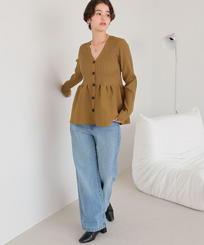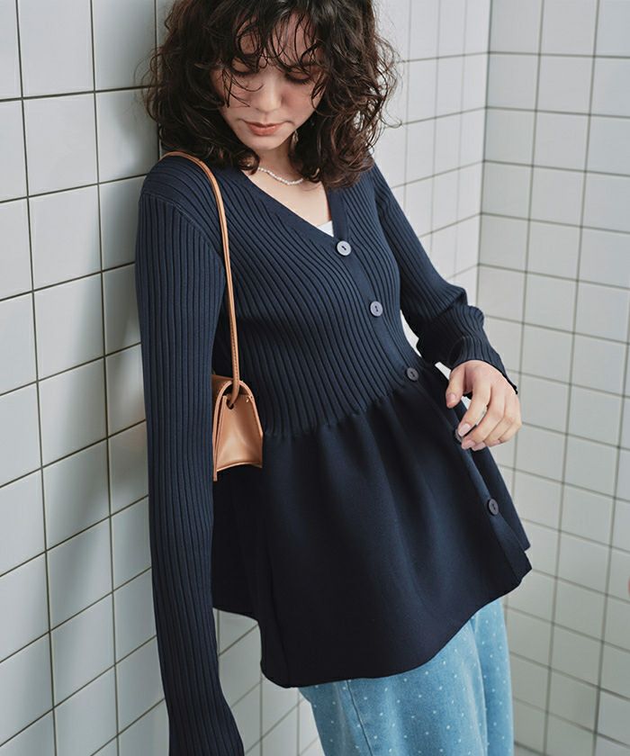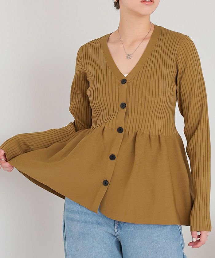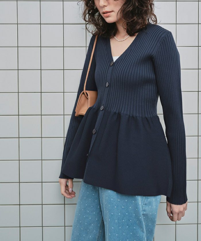 ・前後2way着用できる、ペプラムシルエットが女性らしいニットカーディガン