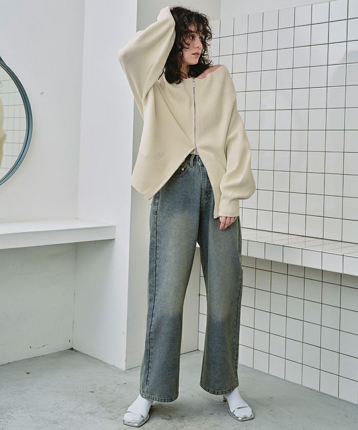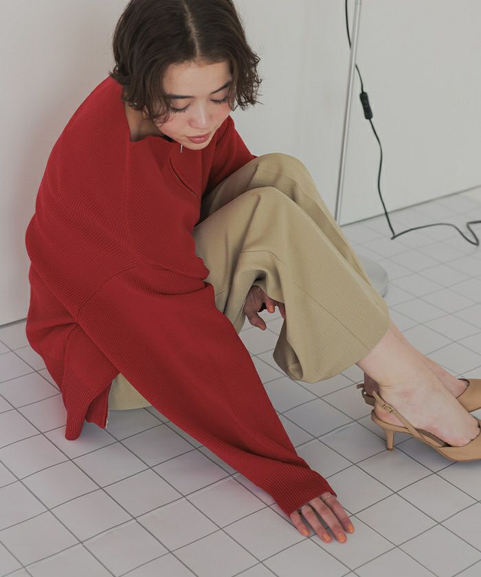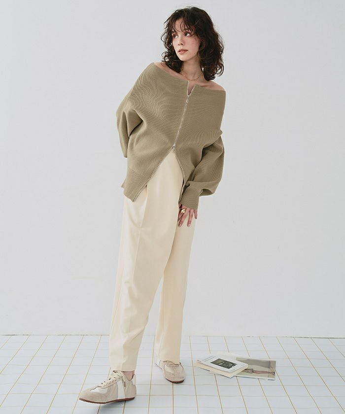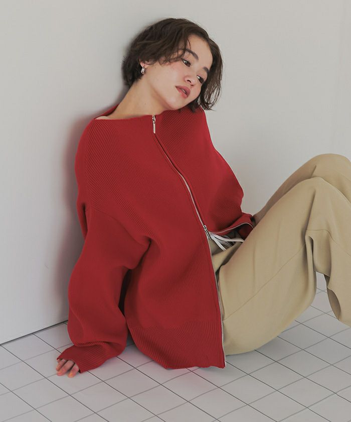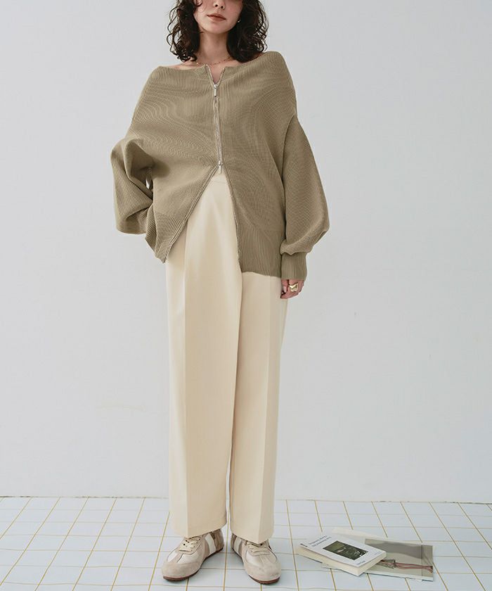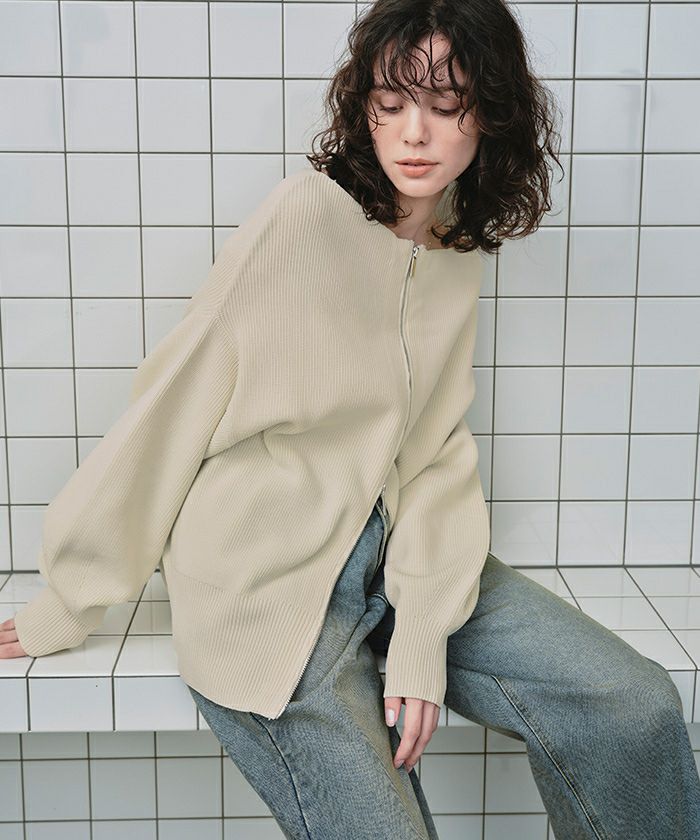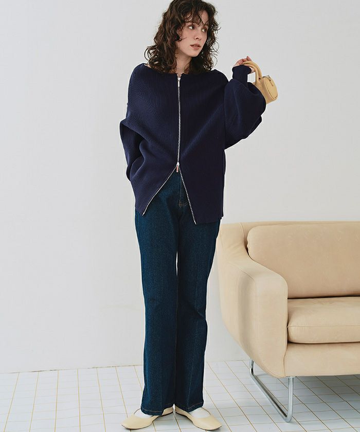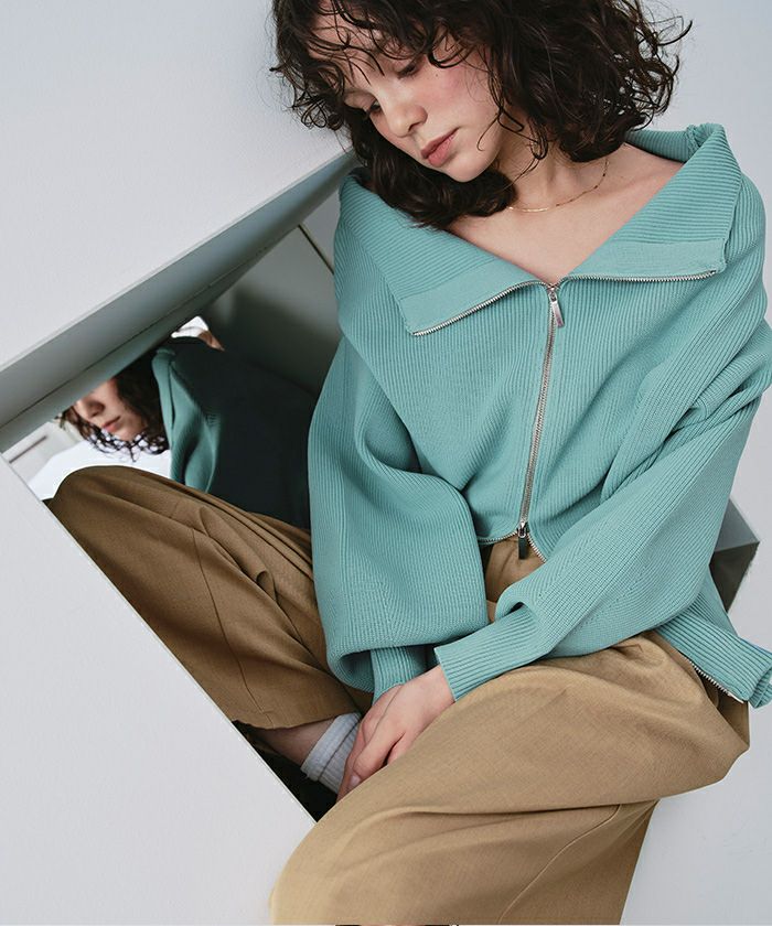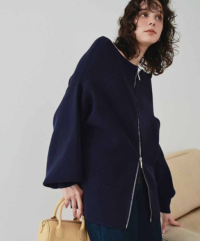 ・ダブルジップ仕様で、お好みの位置で開けたり閉めたりでき、程よい抜け感を出しやすく、スタイリングのバランスがとりやすい仕様にしています。