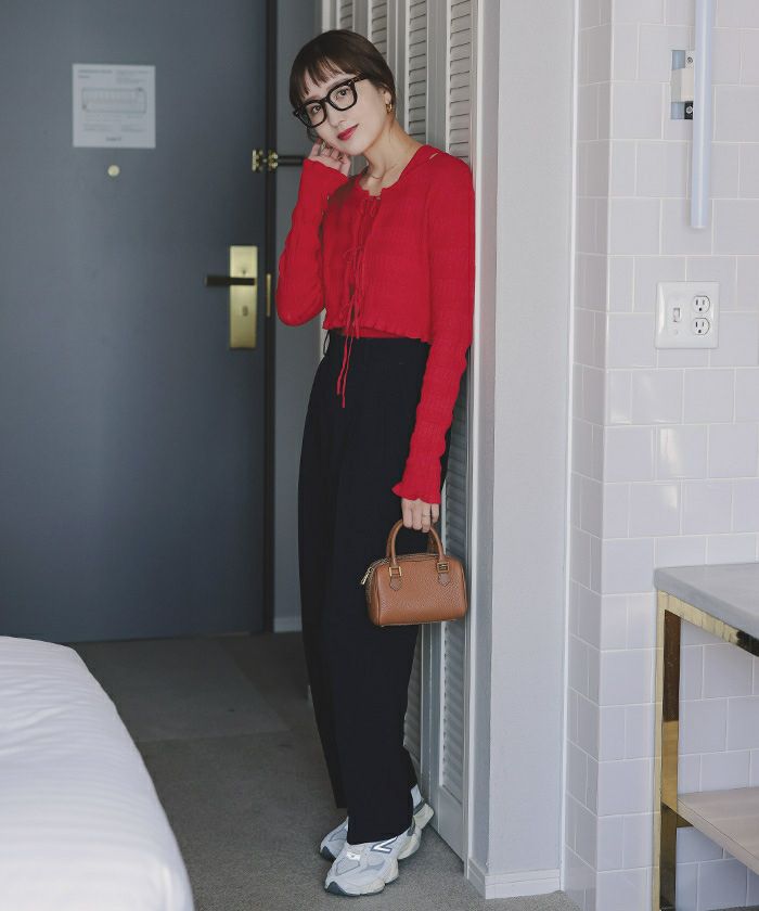 ・コンパクトめなカーディガンと、普段使いもしやすい丈感のノースリーブトップスのレイヤードが絶妙なバランスで◎