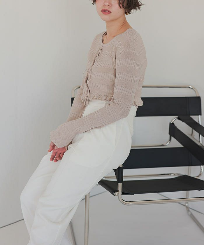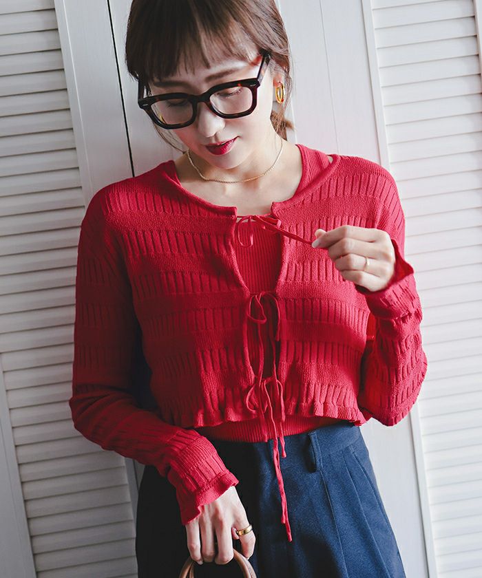・表面感のあるぽこぽこした編地見えがかわいいカーディガンと、別でもデイリー使いしやすいリブニットノースリーブトップスのセット商品です