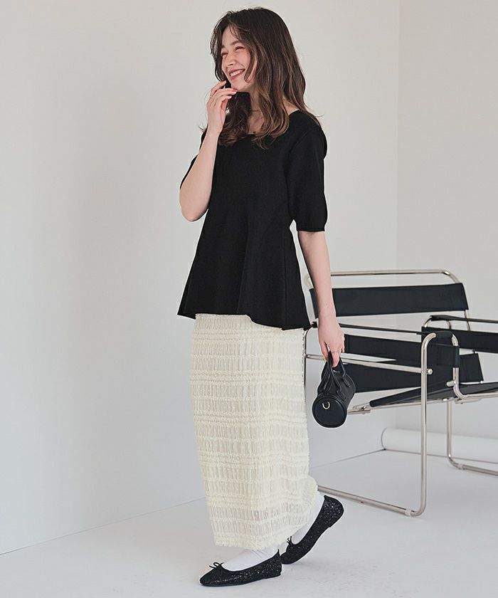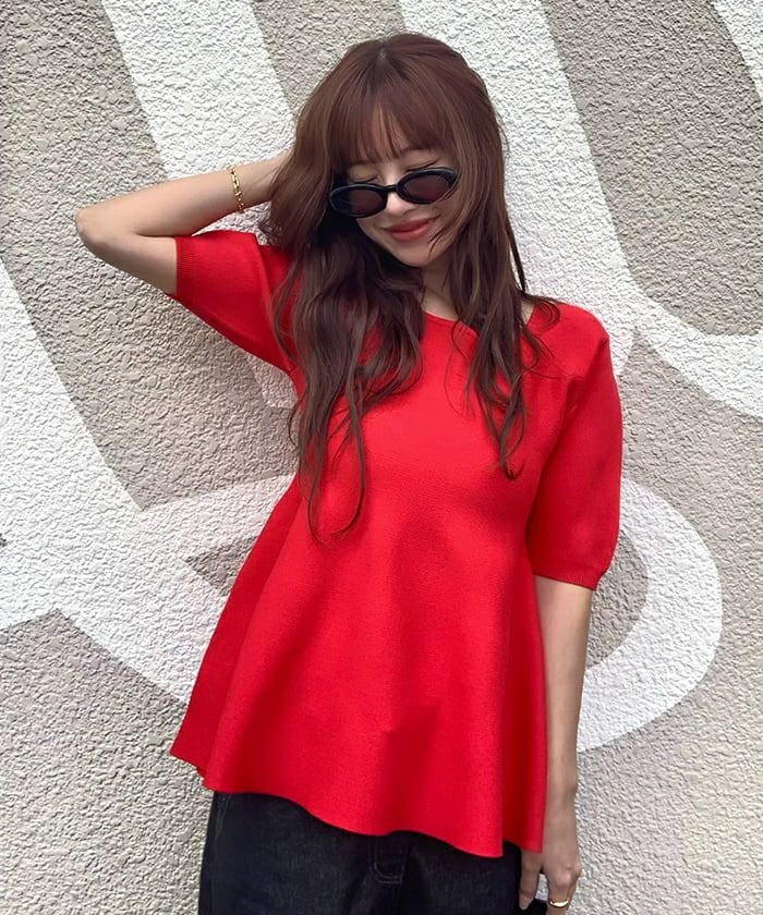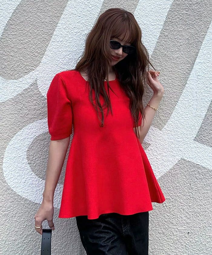 ペプラムデザインですごくかわいいです! ニットも厚地過ぎなくて夏まで着れそう!!
