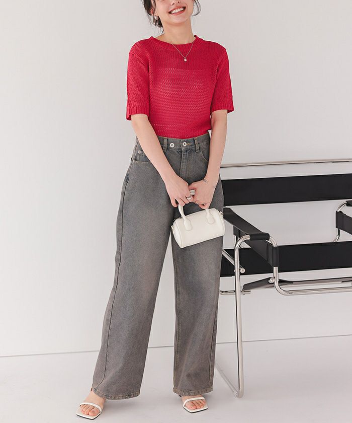 商品情報 ・シンプルなシルエットで着回し力抜群の、分厚くない程よいローゲージ編みのサマーニットトップス。