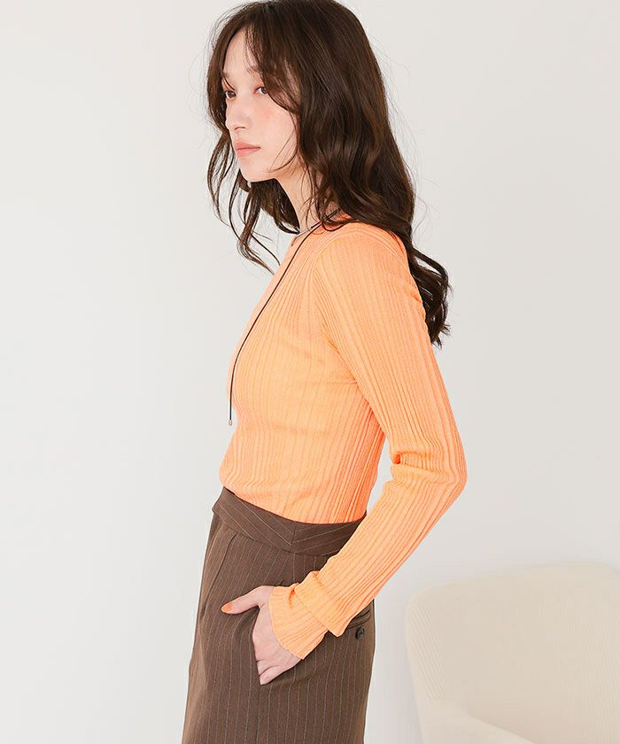 ・程よいシアー感と、縦ラインを強調するリブ編みで抜け感のある印象に