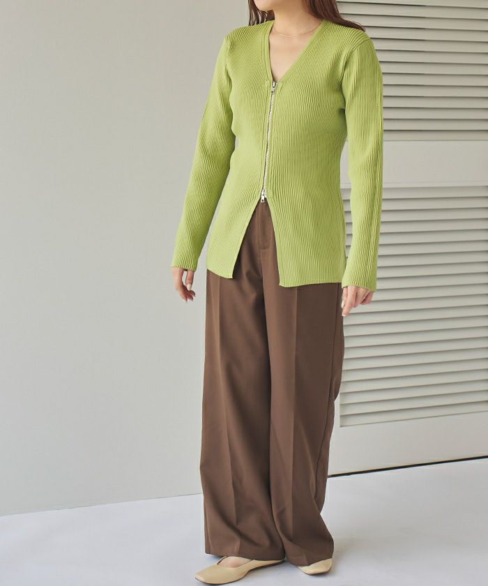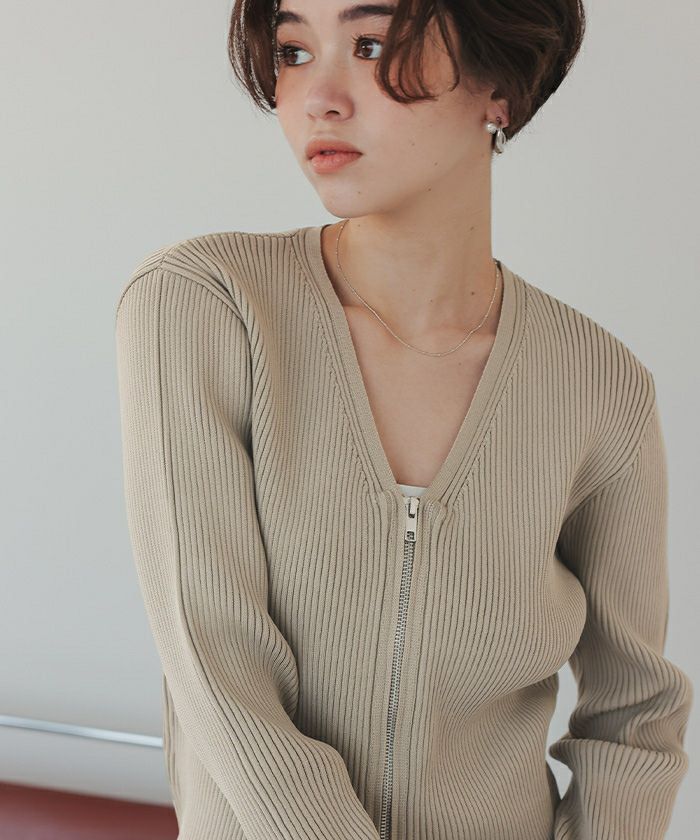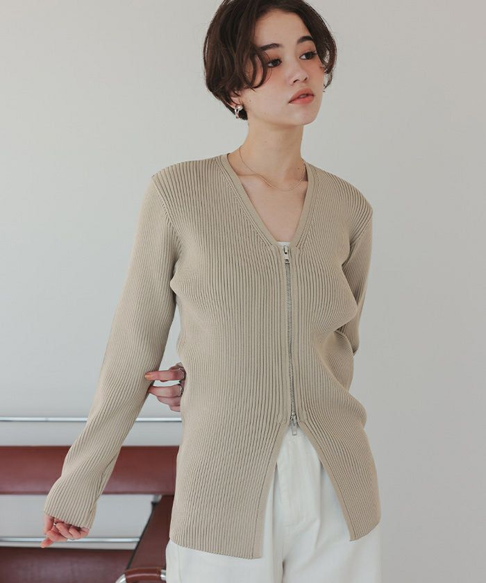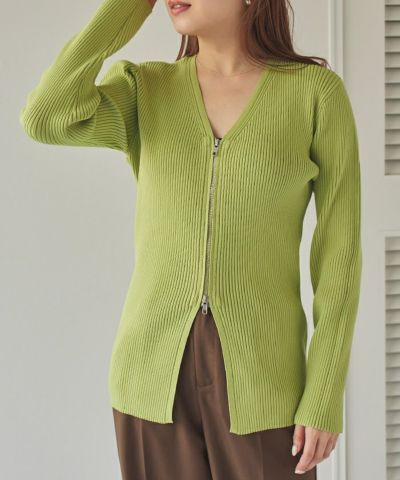 ・ダブルジップアップで開閉できる、ニットとしてもカーディガンとしても着られるアイテム。