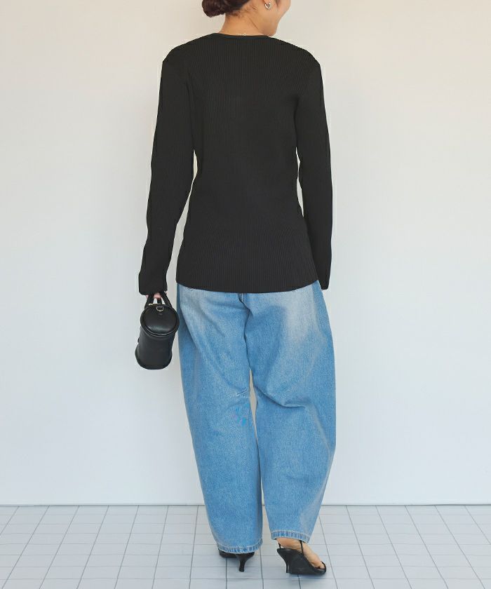 ・首元はVネックで大人らしくすっきりした印象に。