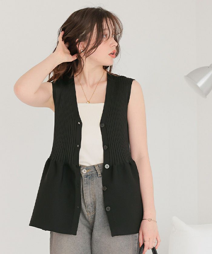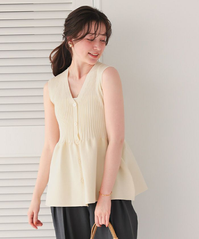 ・前後2way着用できる、ペプラムシルエットが女性らしいニットカーディガン