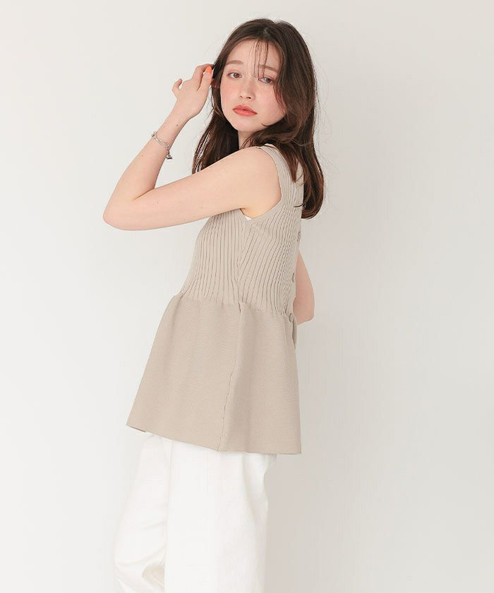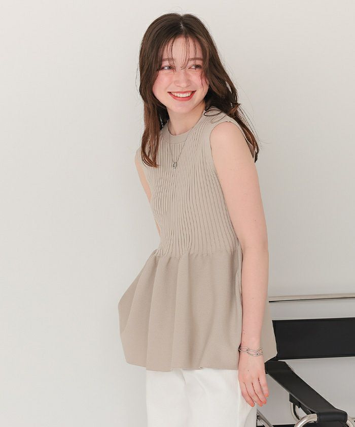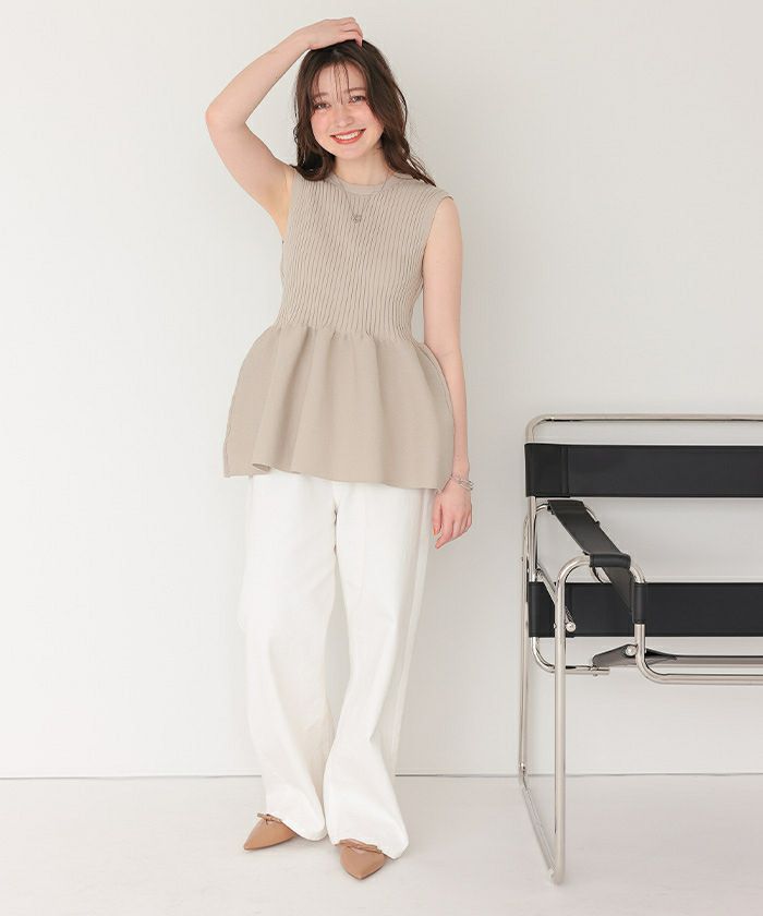 ・すっきりとした肩まわりのシルエットに仕上げ、女性らしい肌見せの叶うノースリーブデザイン