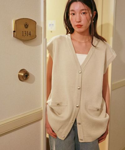 ・ゴールド釦がアクセントのオーバーサイズニットベスト