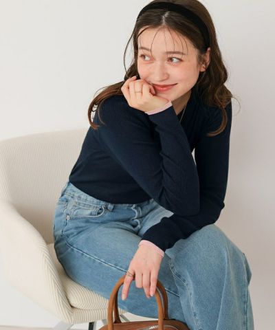 チクチクしないウールブレンドプチハイネックリブニット