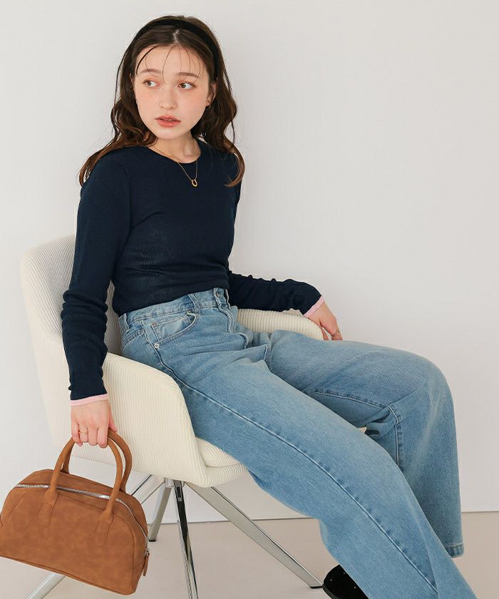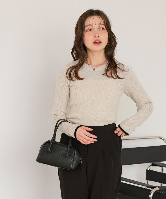 チクチクしないウールブレンドボートネックリブニット