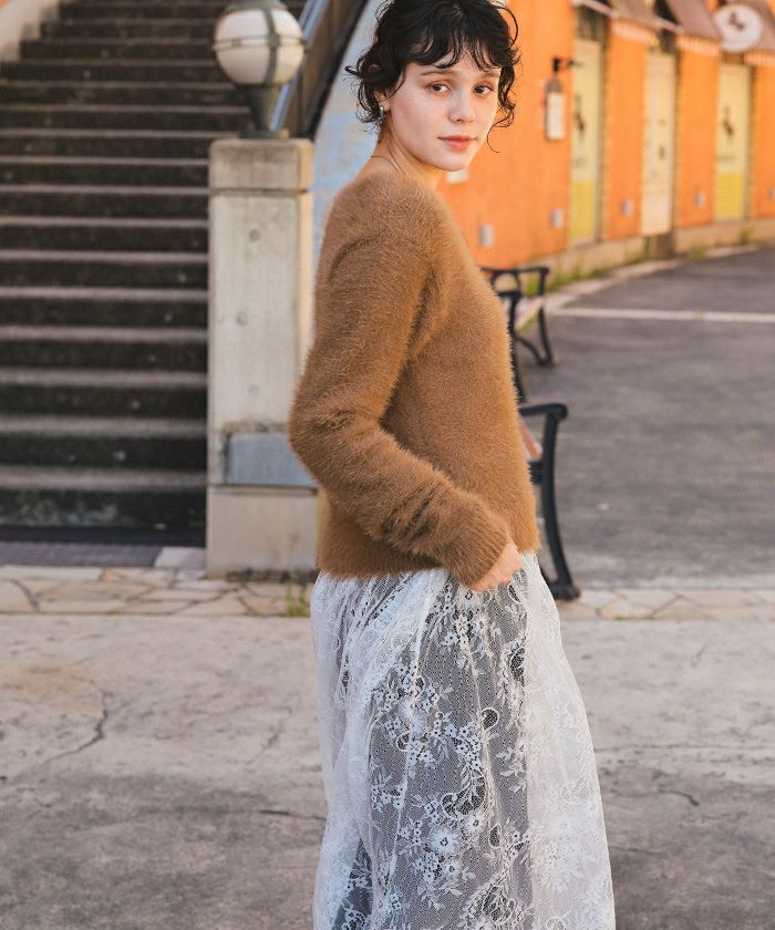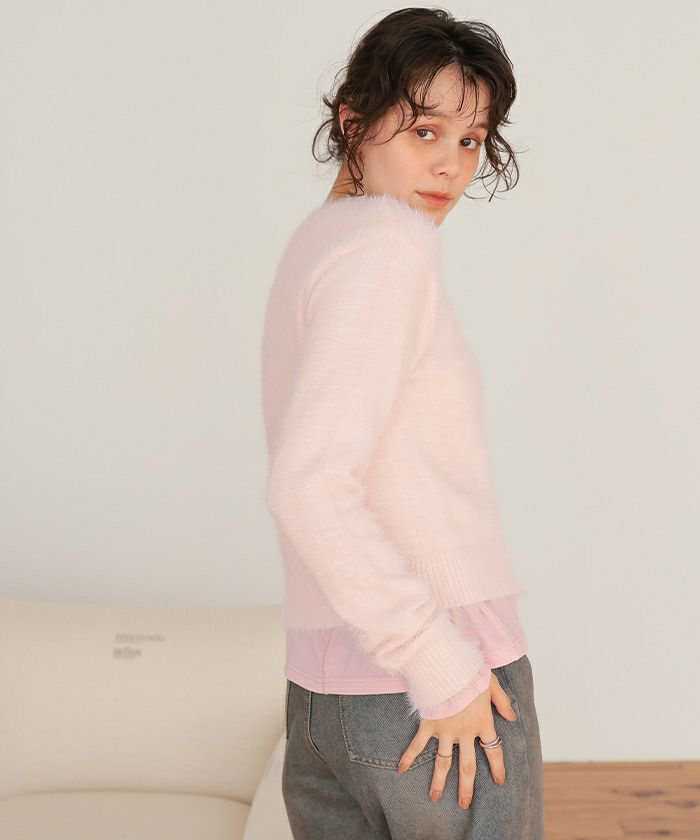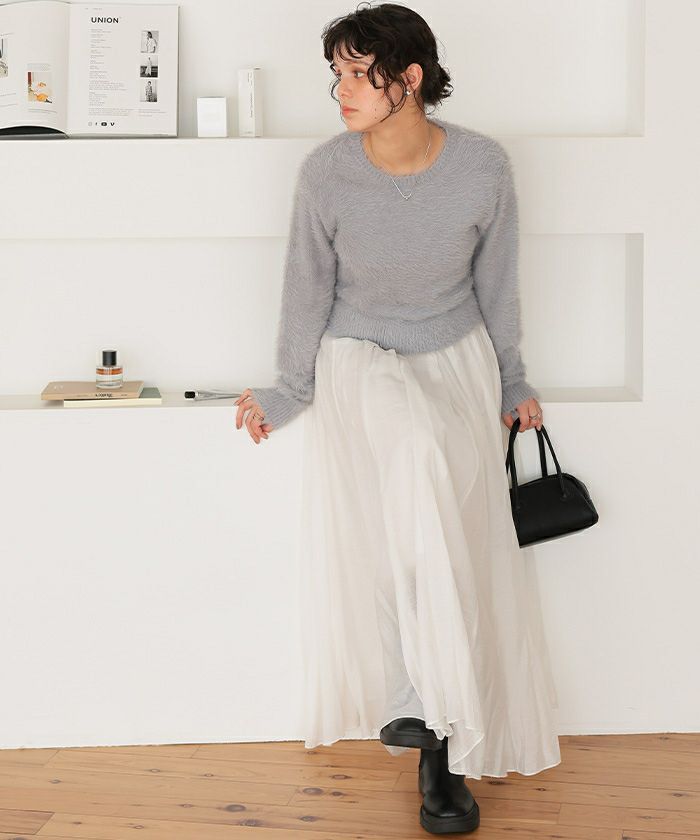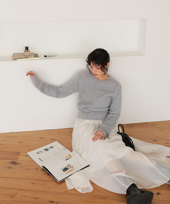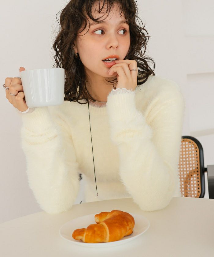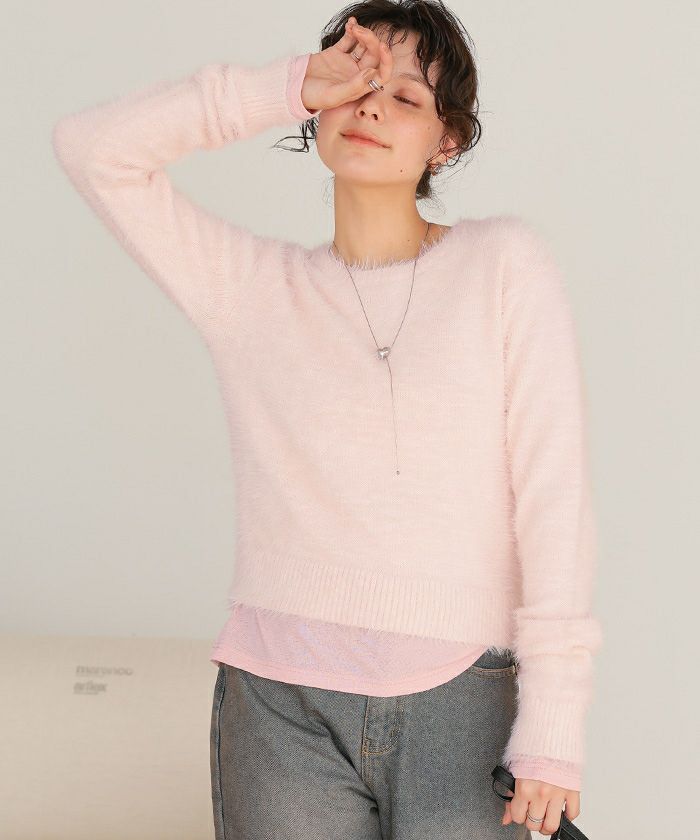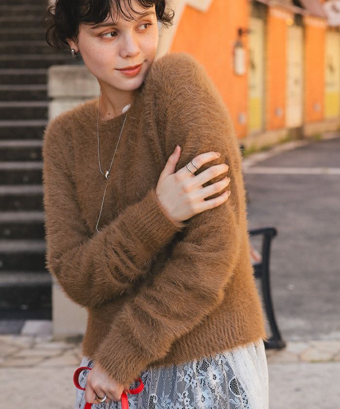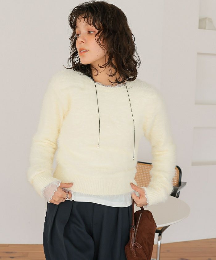 クルーネックミニシャギーニット