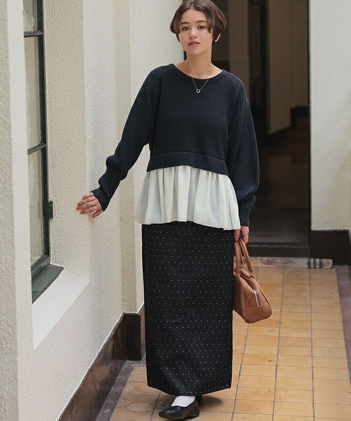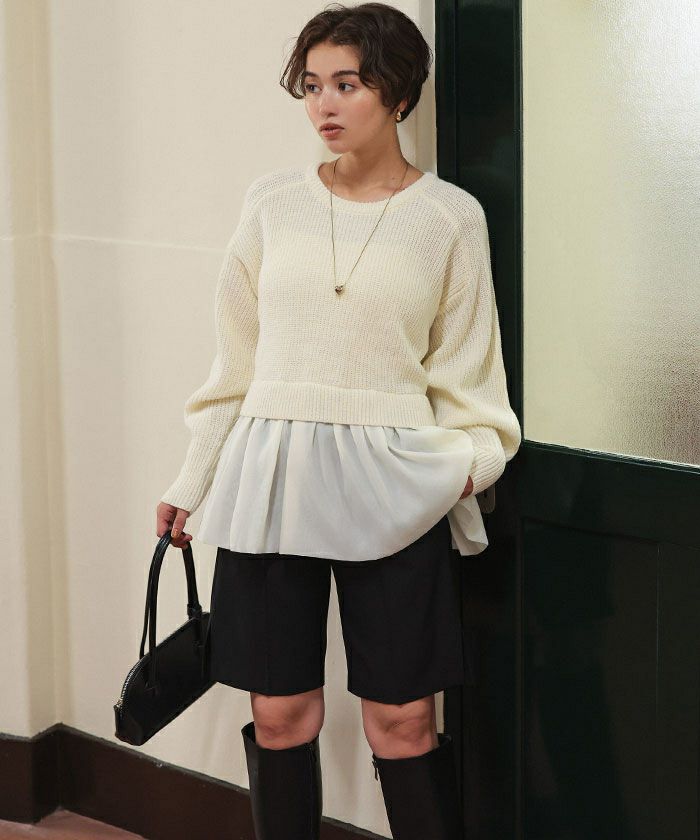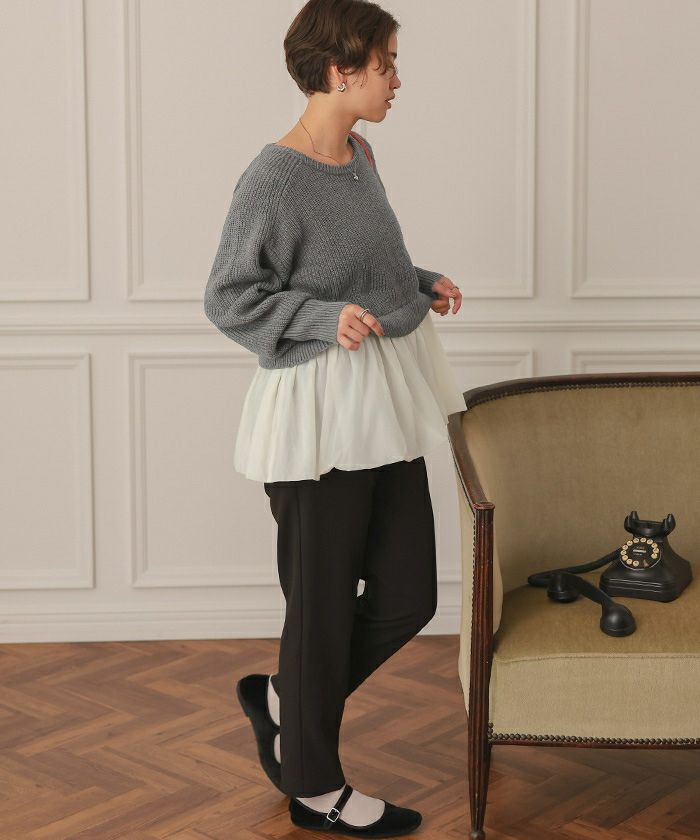 シアーペプラムドッキングニットプルオーバー