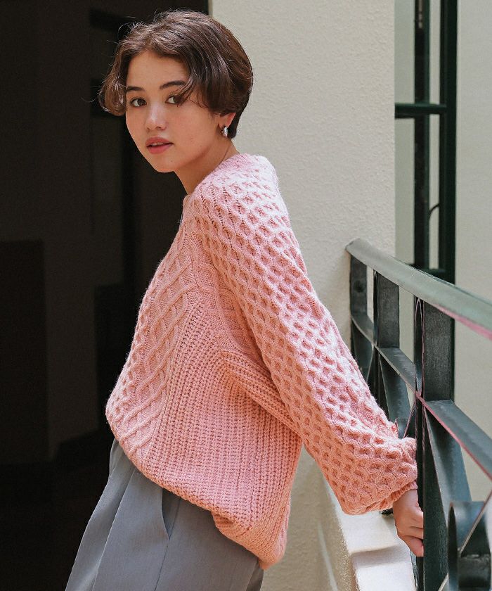 ・ざっくりとしたケーブル編みが目を惹く、主役級ニット