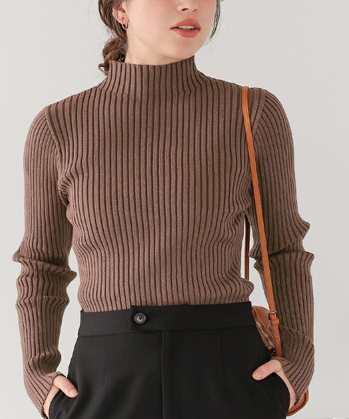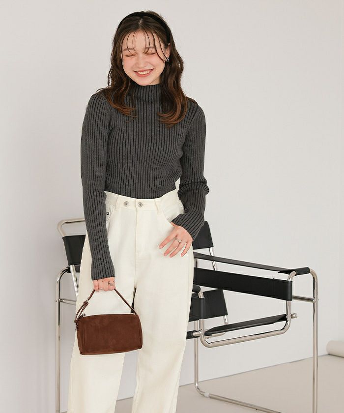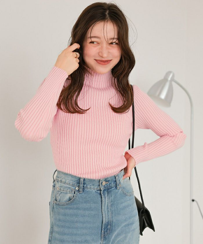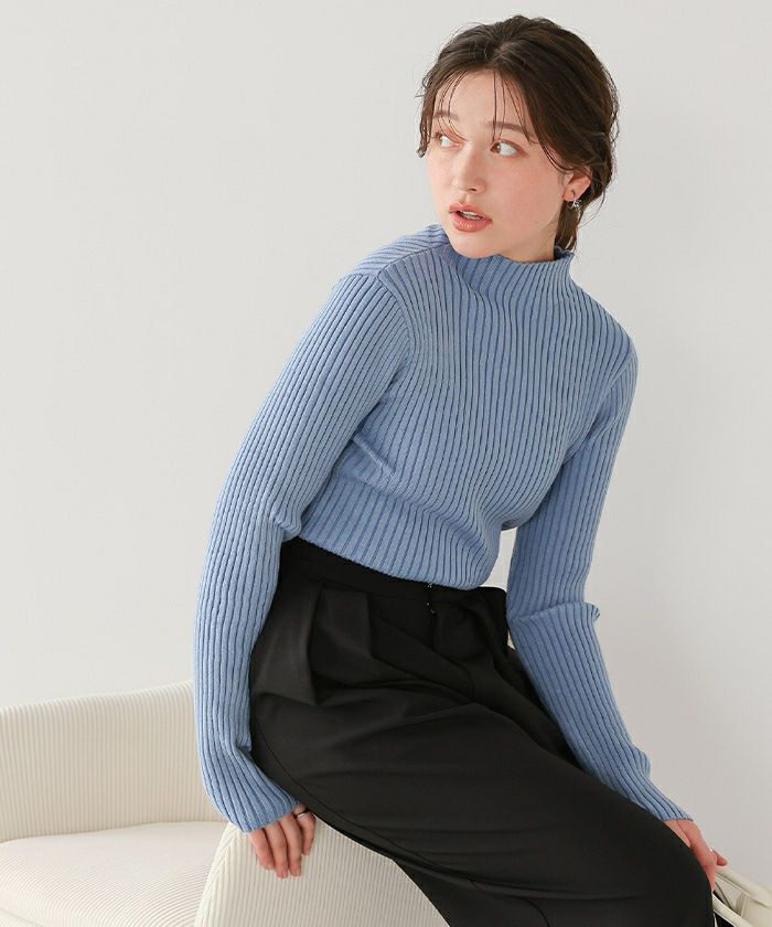 リブがとっても可愛くて高見えします!グレー買いましたがホテルオークラの色も検討中です。ハイネックが低めで首が詰まって見えなくてスッキリ着られるのもお気に入りポイント。