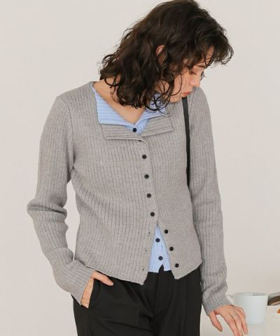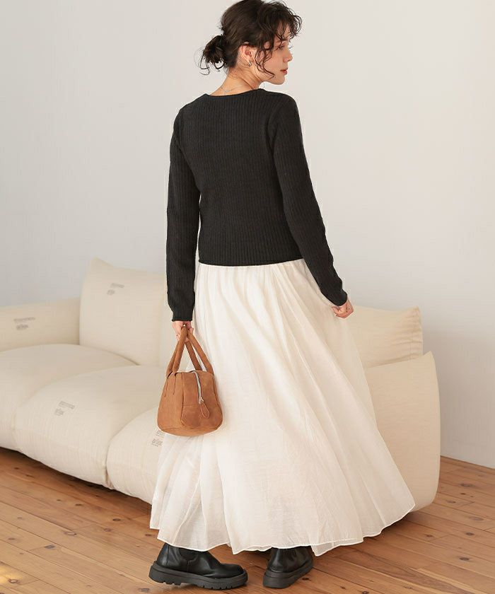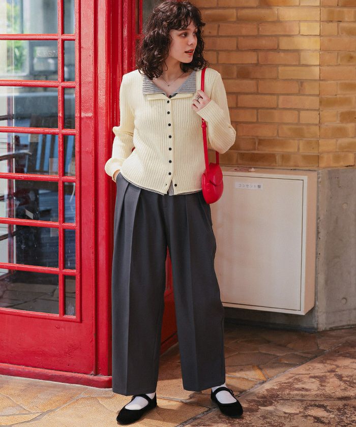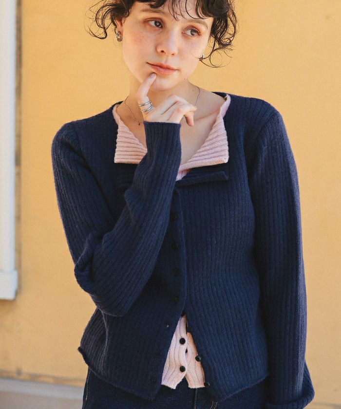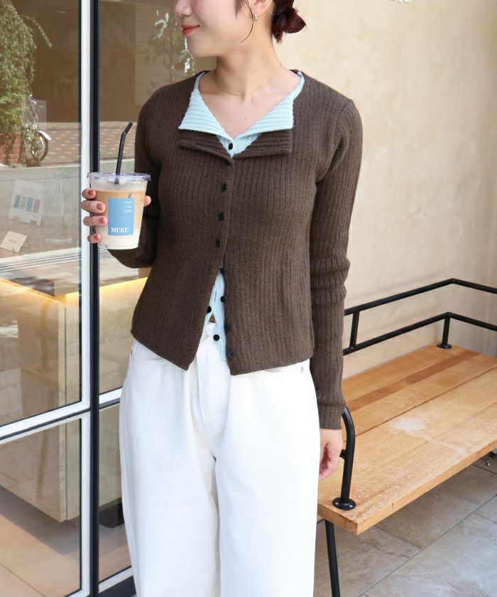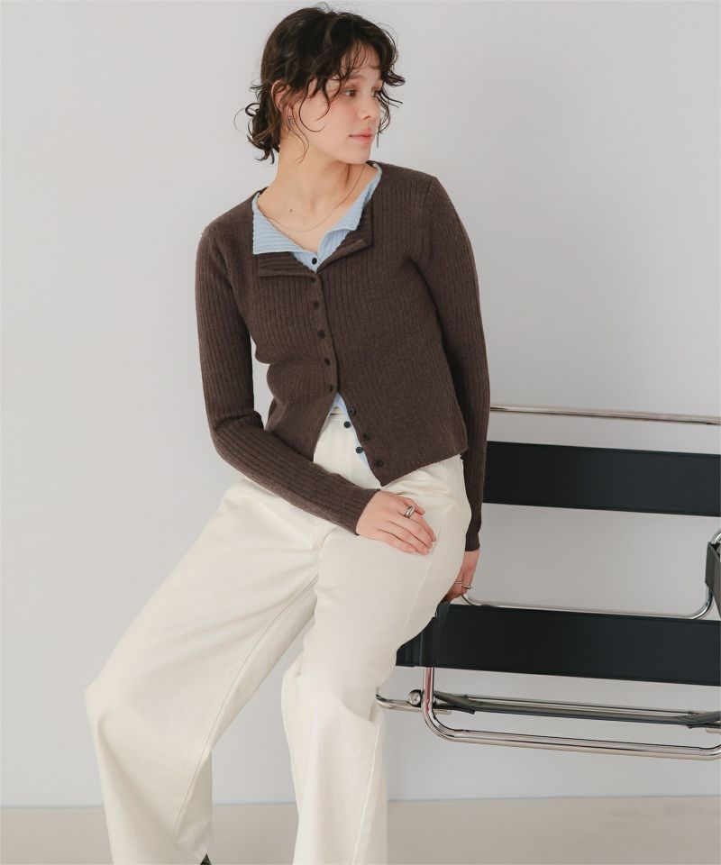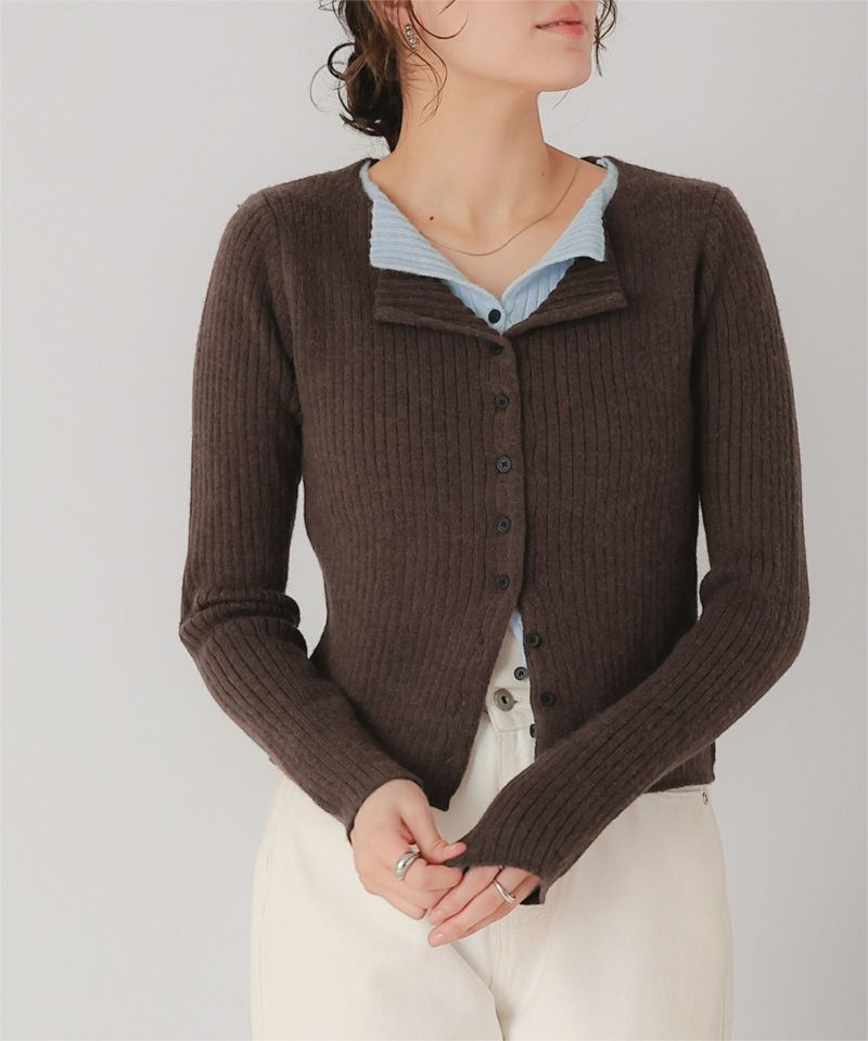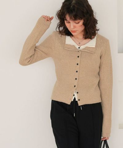・ニットを重ねたようなレイヤードデザインと配色使いがポイントの1枚で着映えするニットトップス