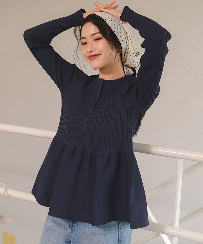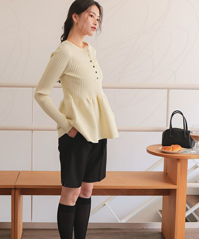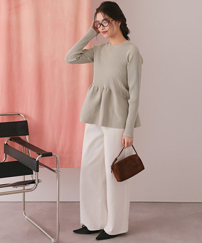 ・ふんわり広がるペプラムシルエットで、腰回りをカバーしつつスタイルアップ