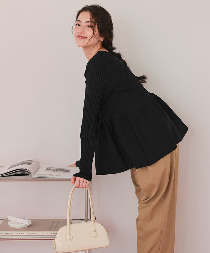 ・前後2wayで着用できる、ペプラムシルエットが女性らしいニットカーディガン