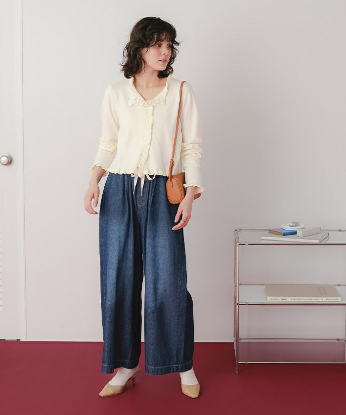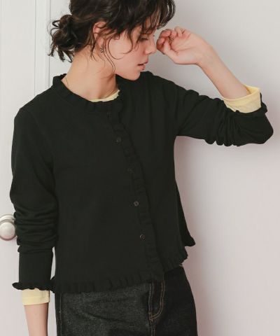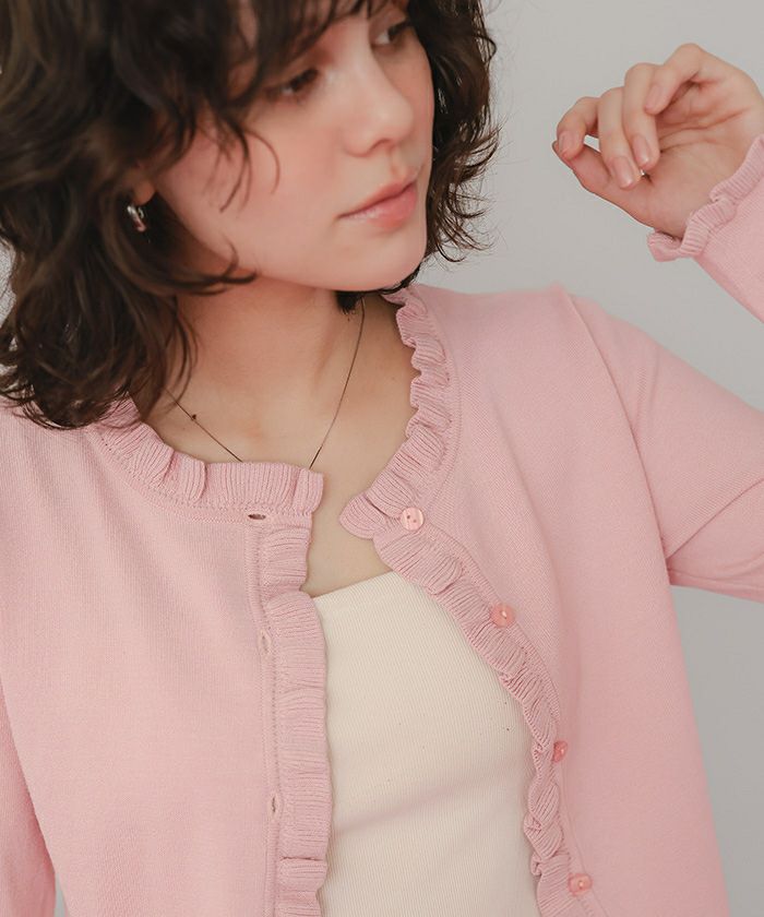 UVケア/抗ピルプチフリルデザインニットカーディガン
