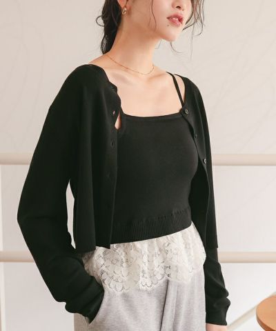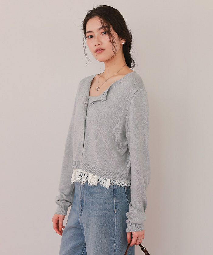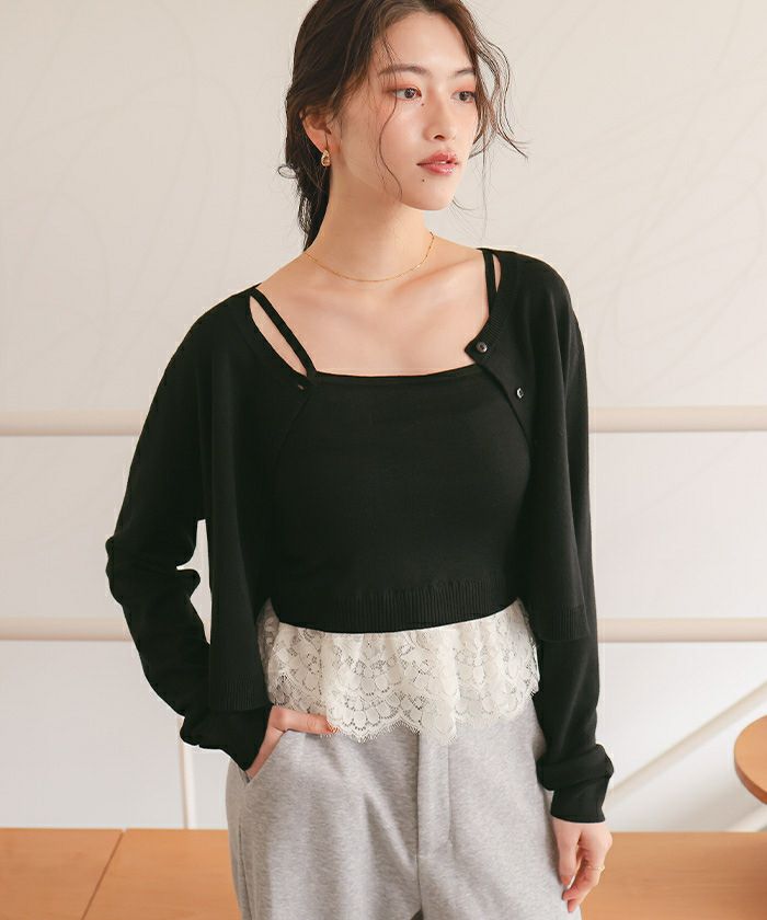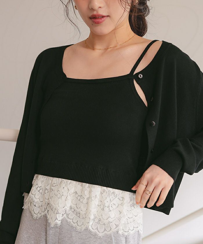 レースヘムキャミソール/カーディガンニットセット