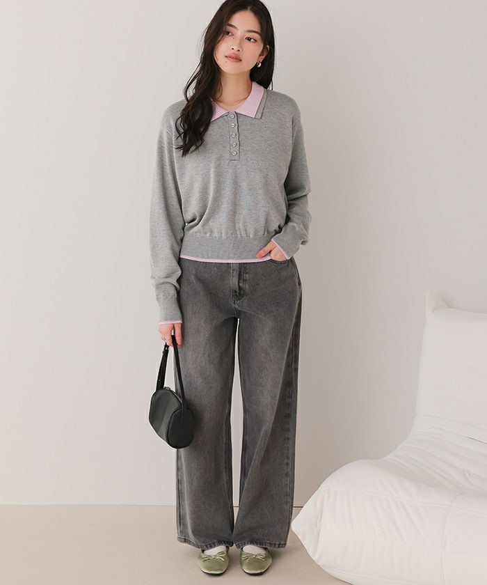 ・襟がドッキングされたデザインで1枚で着映えするニットトップス