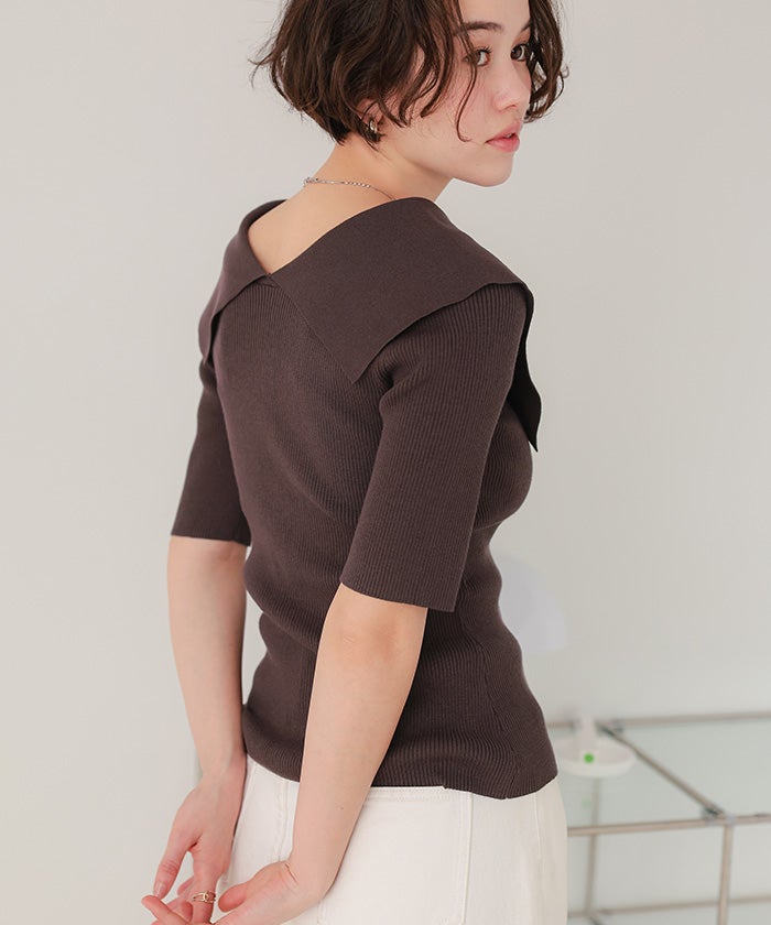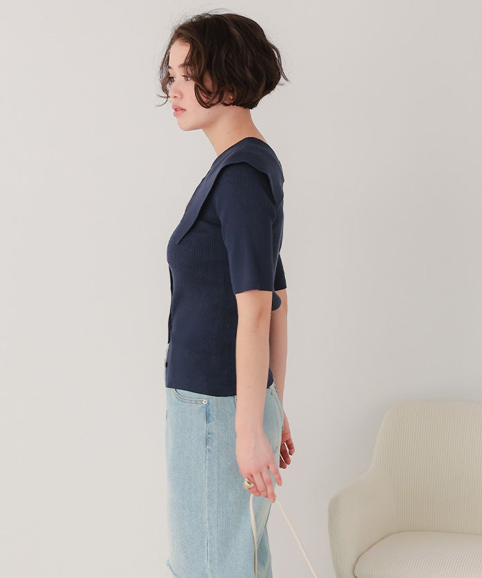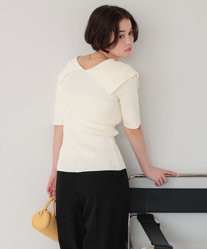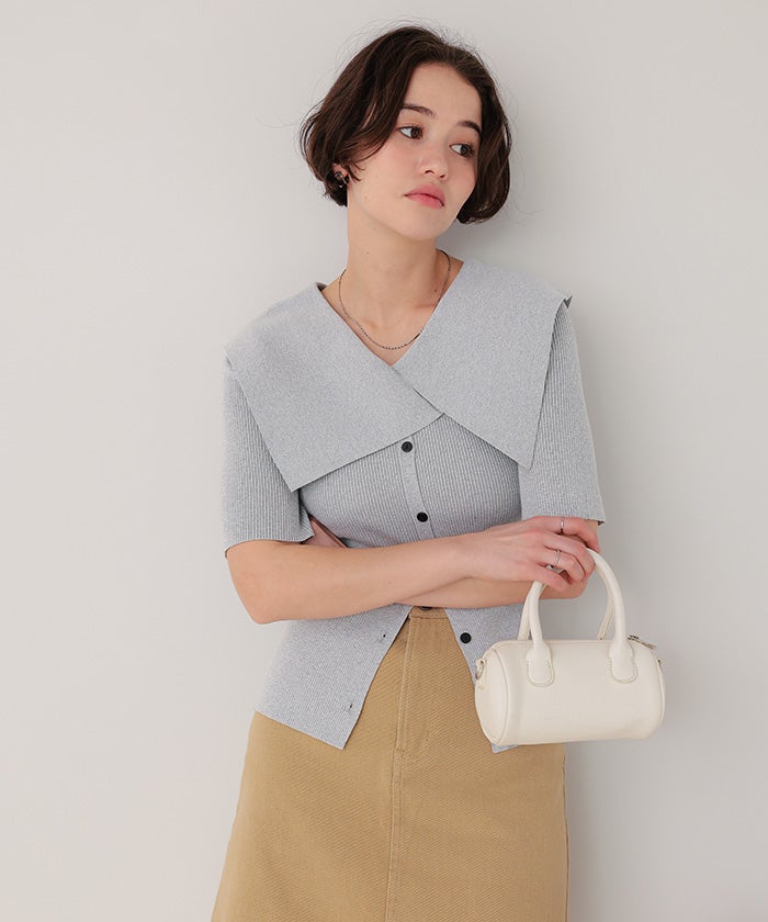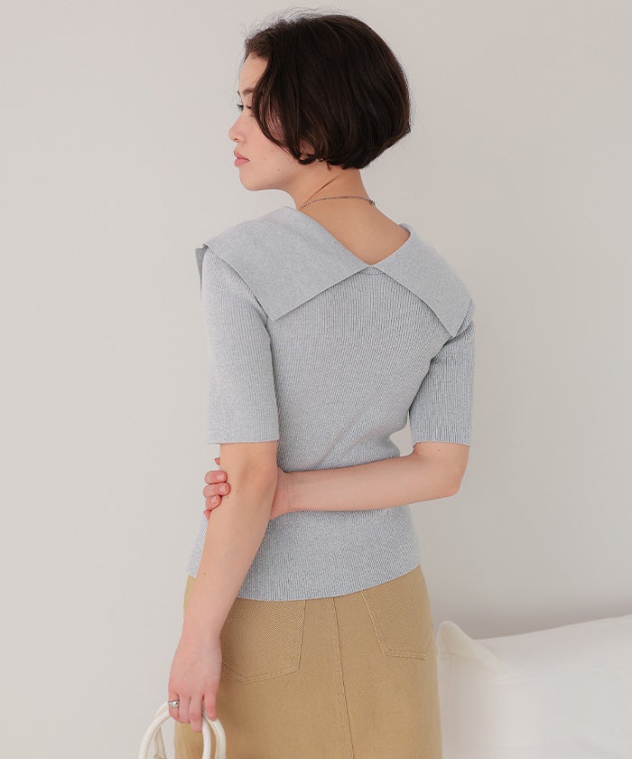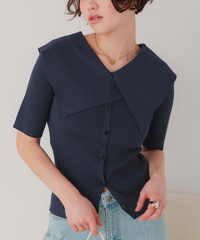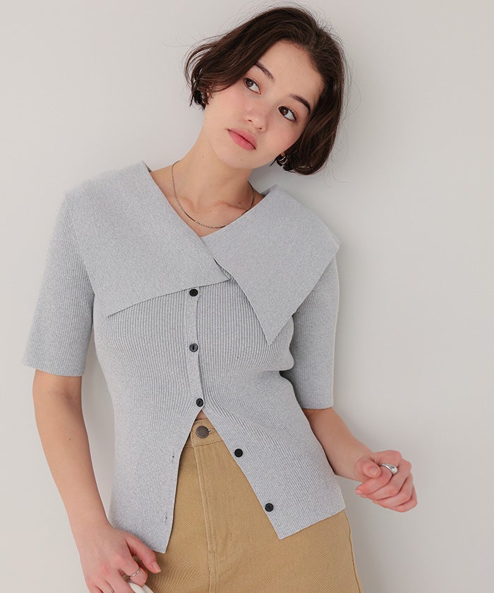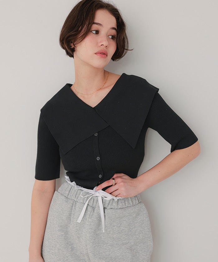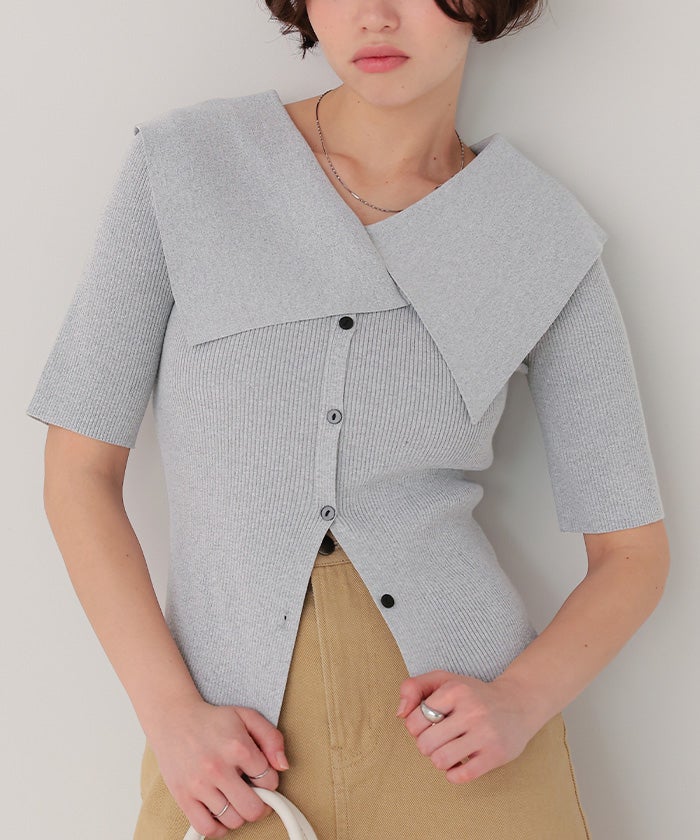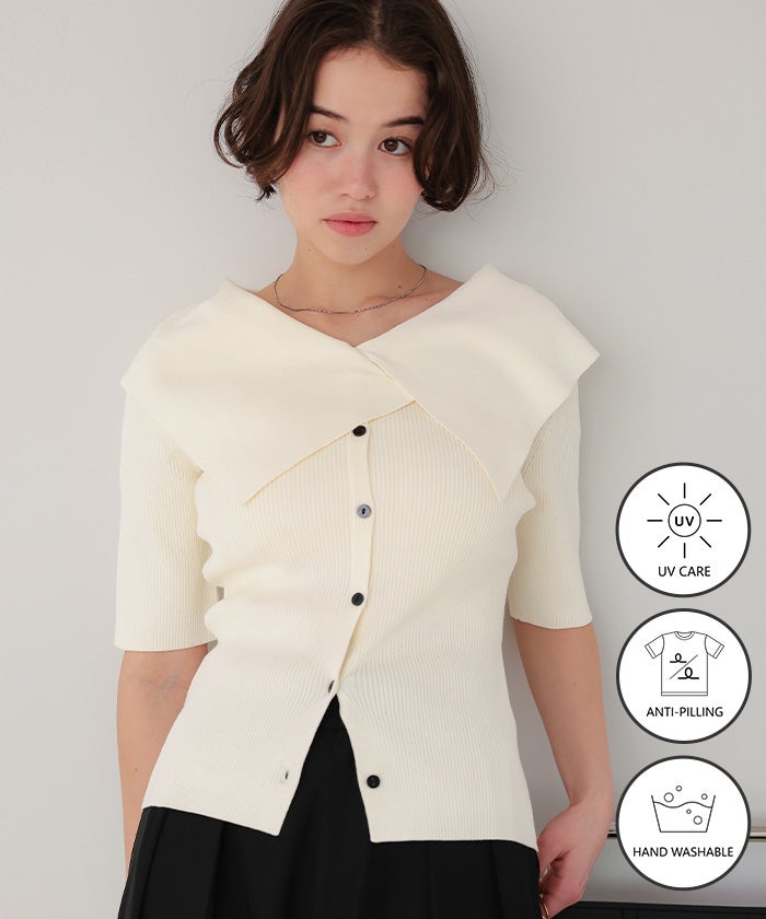 UVケア/抗ピルビッグカラー半袖リブニット