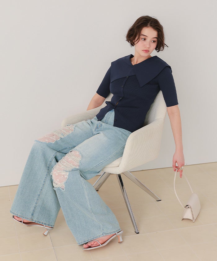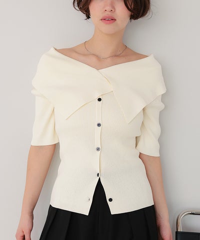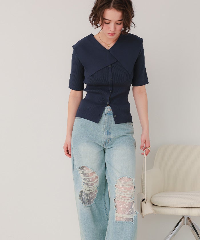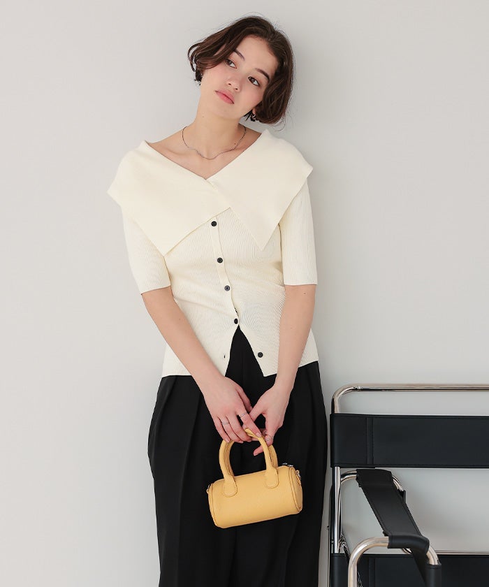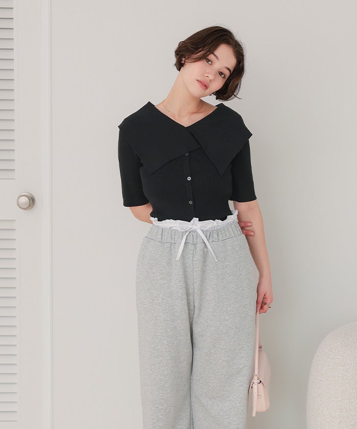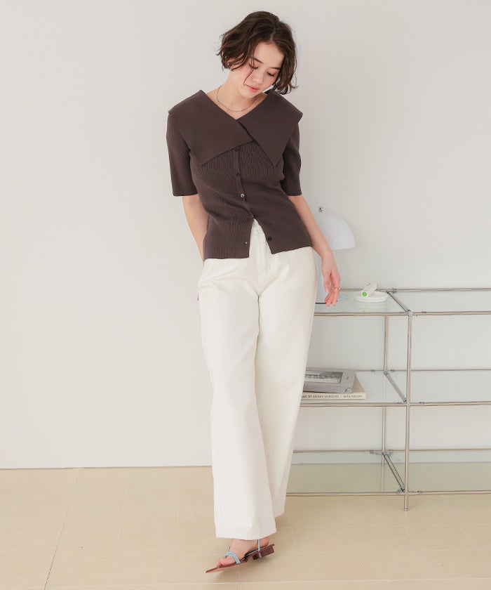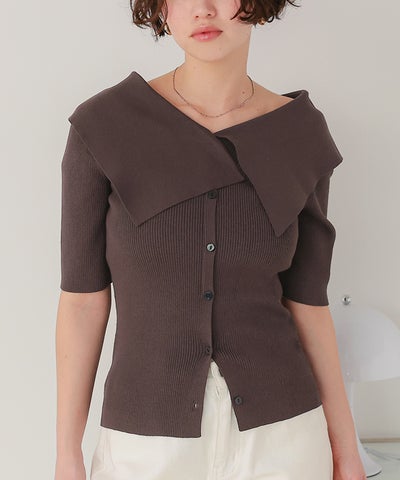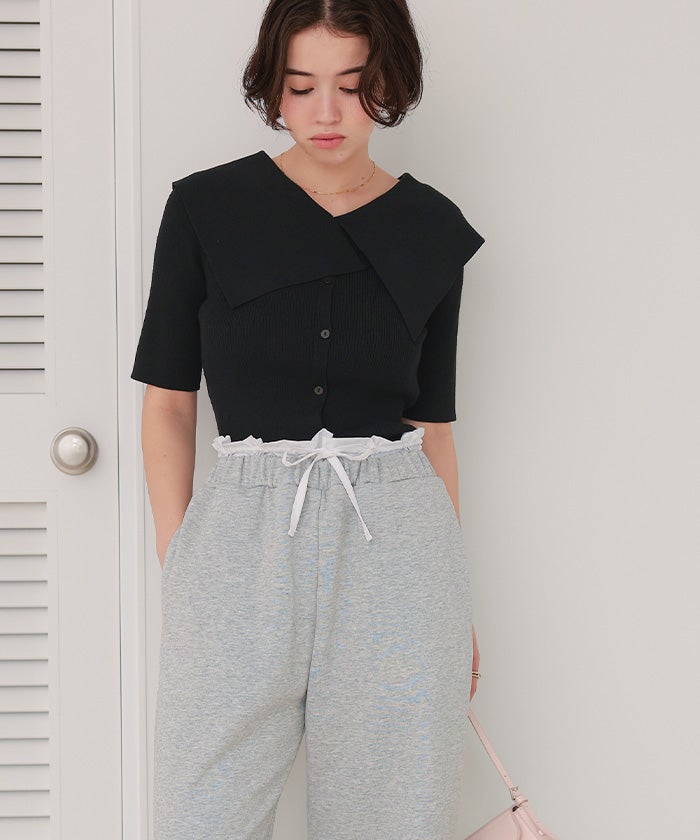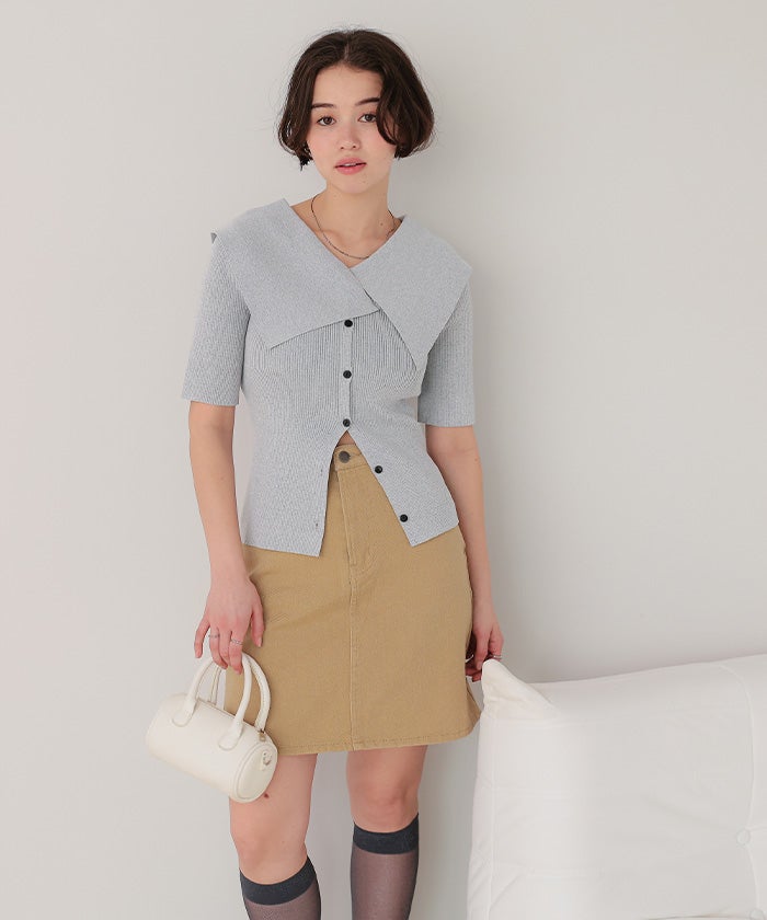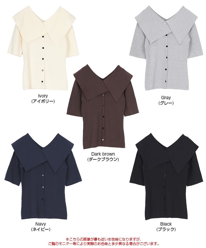 UVケア/抗ピルビッグカラー半袖リブニット