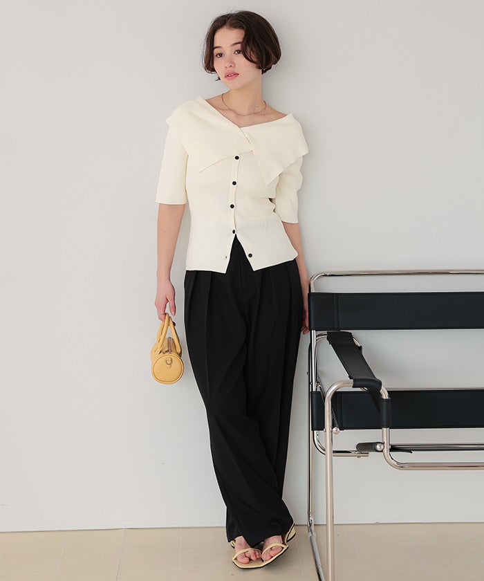 ・程よい開きの襟元でデコルテを美しく演出し、上品さとカジュアル感を両立