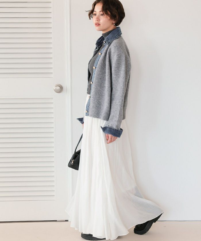 ・デニム切替でカジュアルにコーディネートを格上げカーディガン