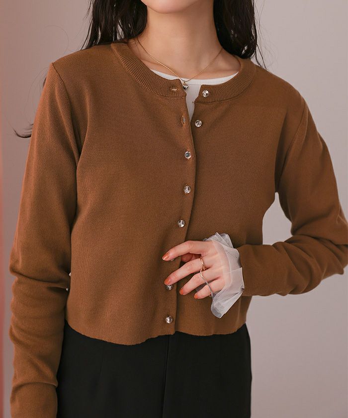 ・クリア釦のデザインのニットカーディガン