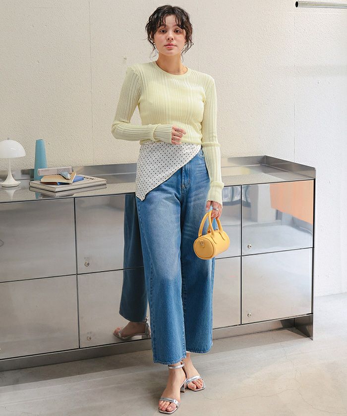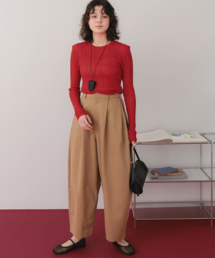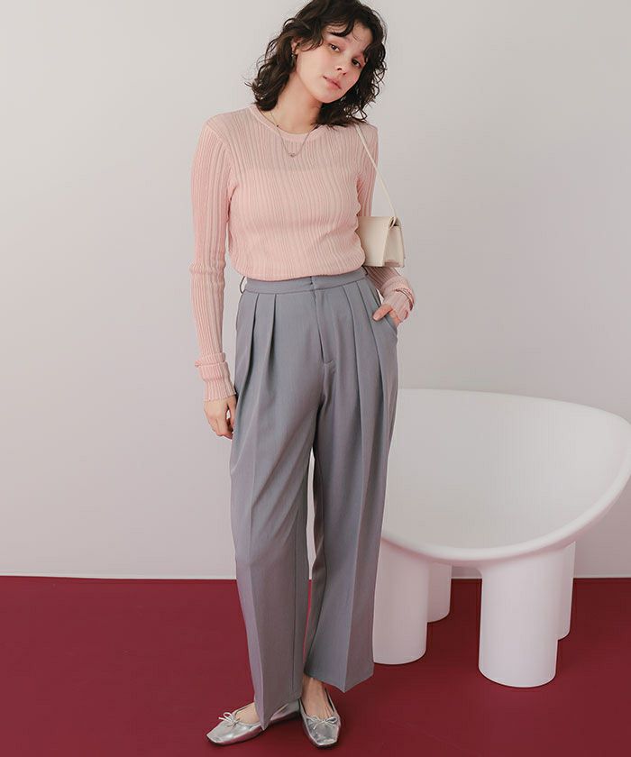 ・ランダムリブが縦ラインを強調し、すっきり華奢見えを叶えるシアーニットトップス