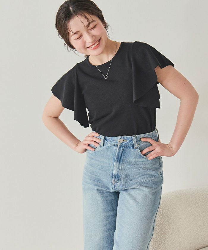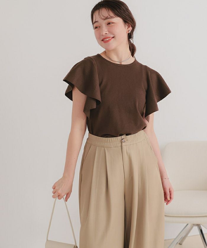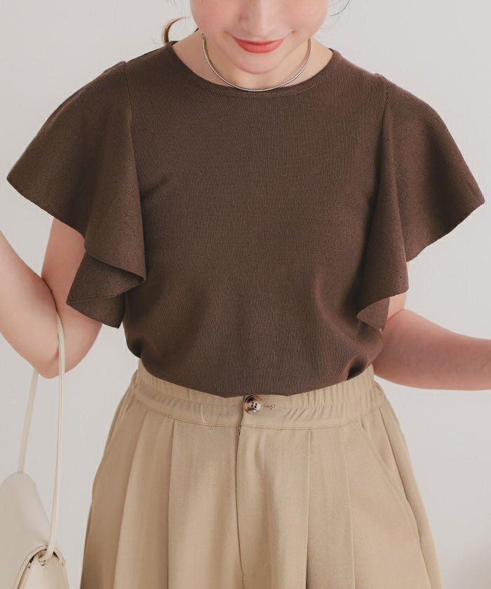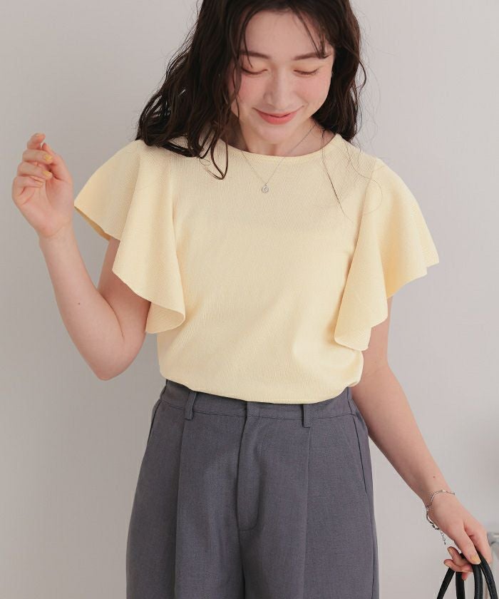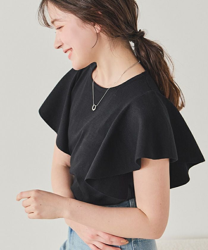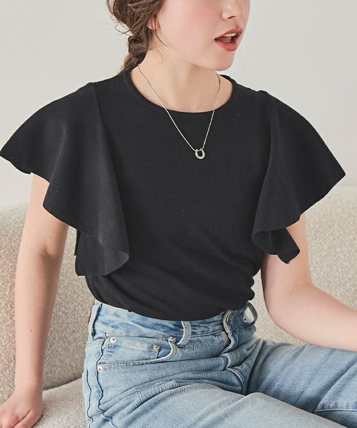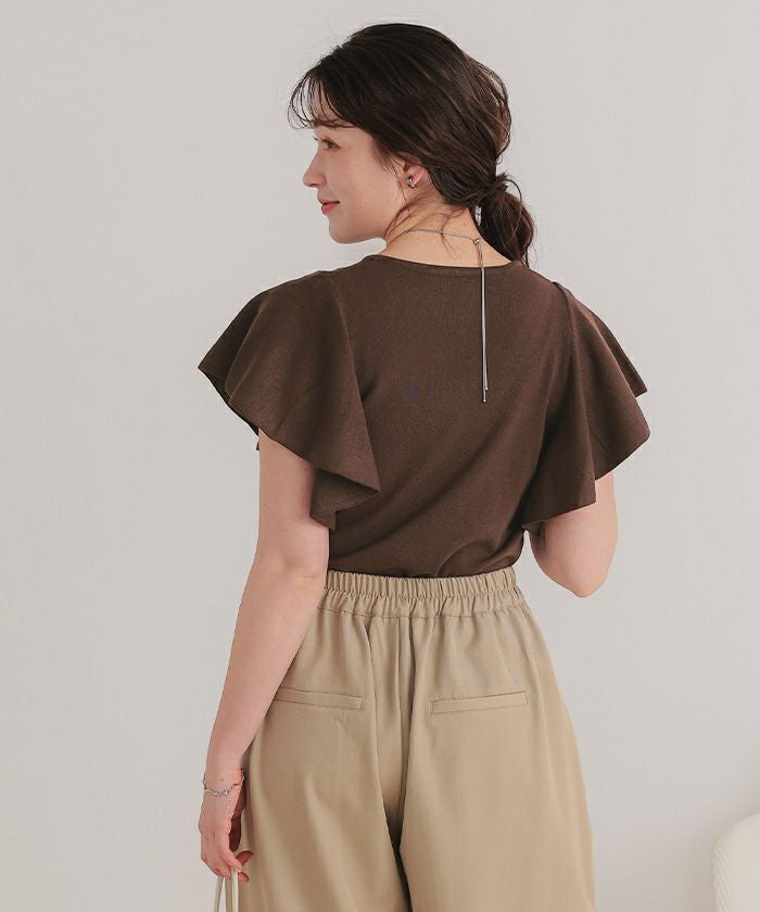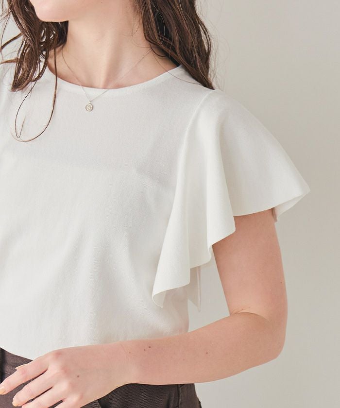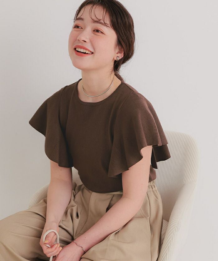 ・袖にあしらったフレアデザインが、動くたびにやさしく揺れるニットトップス