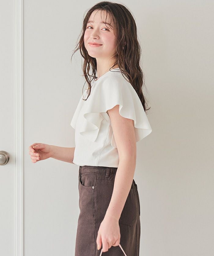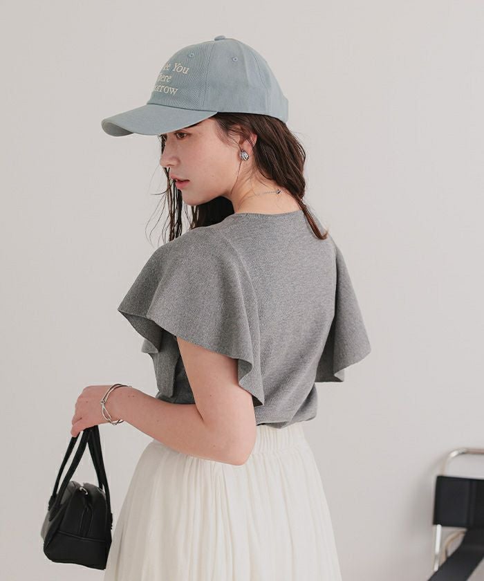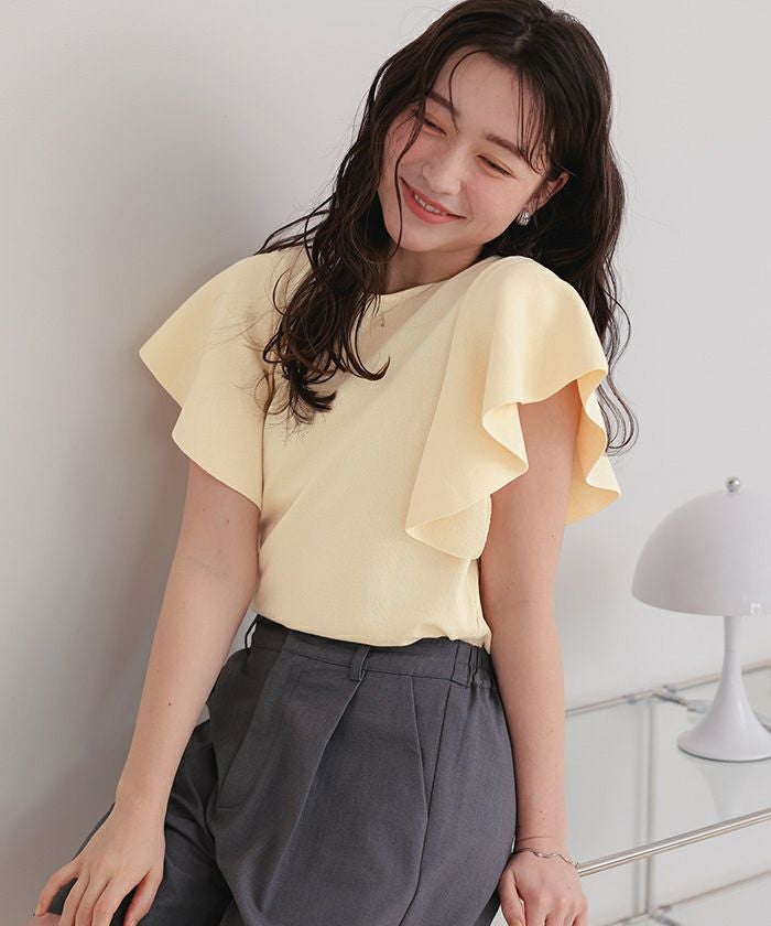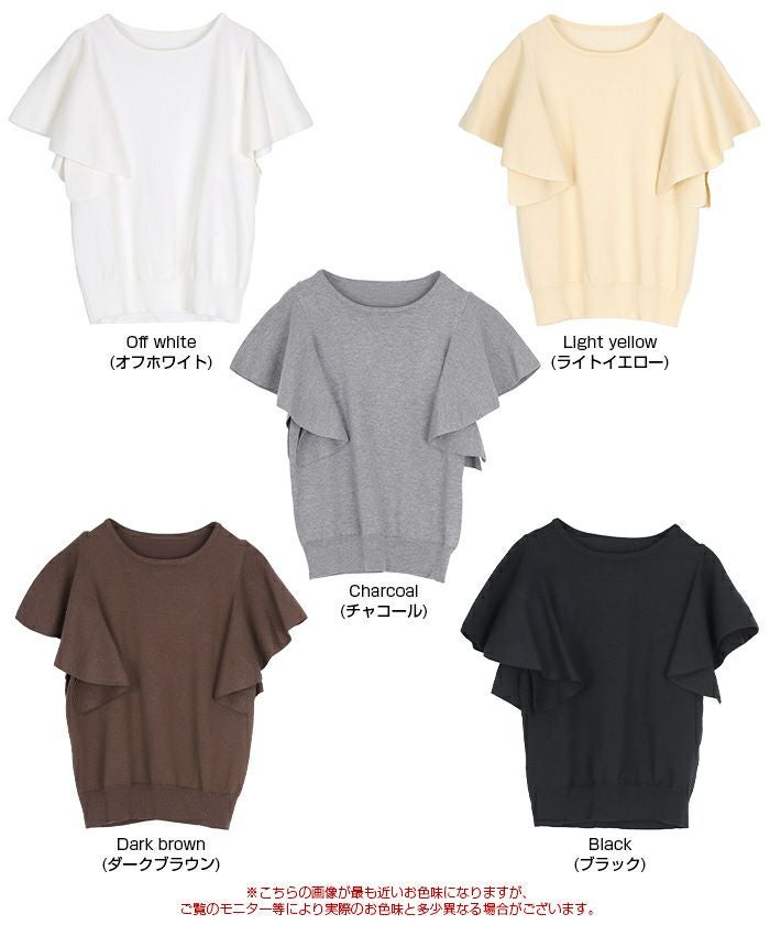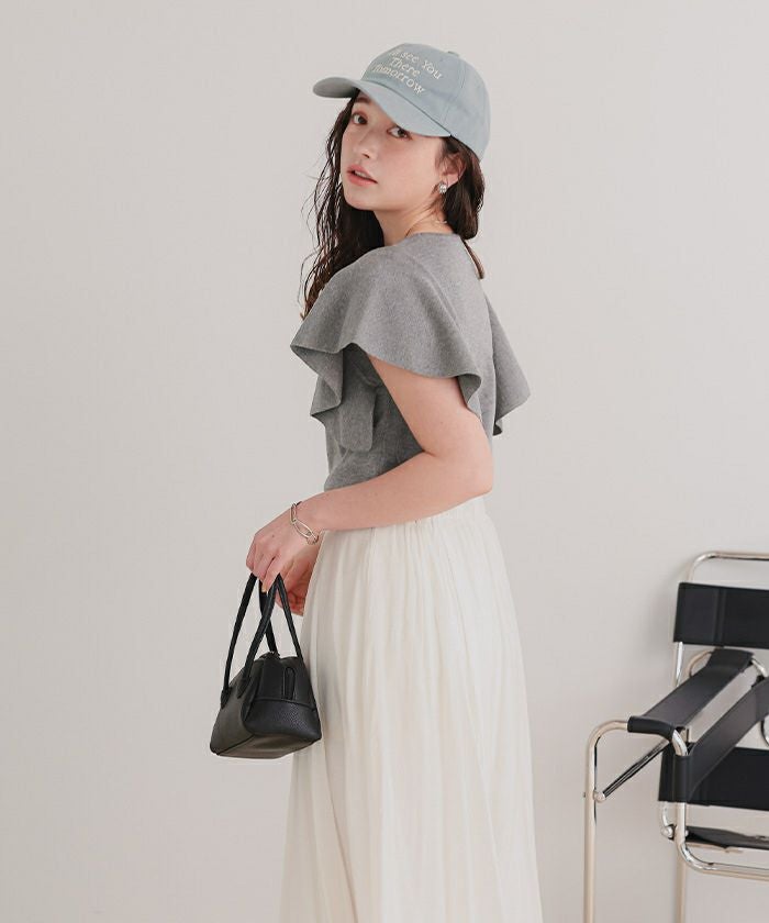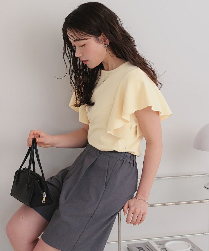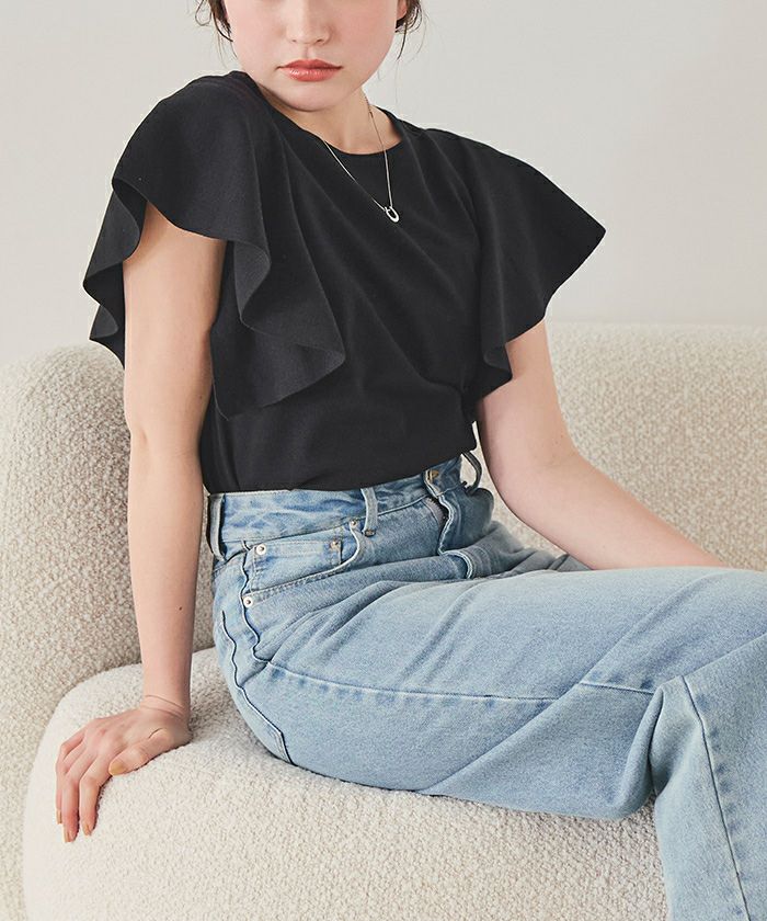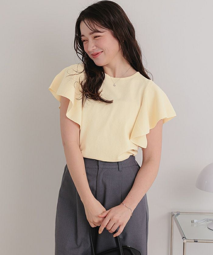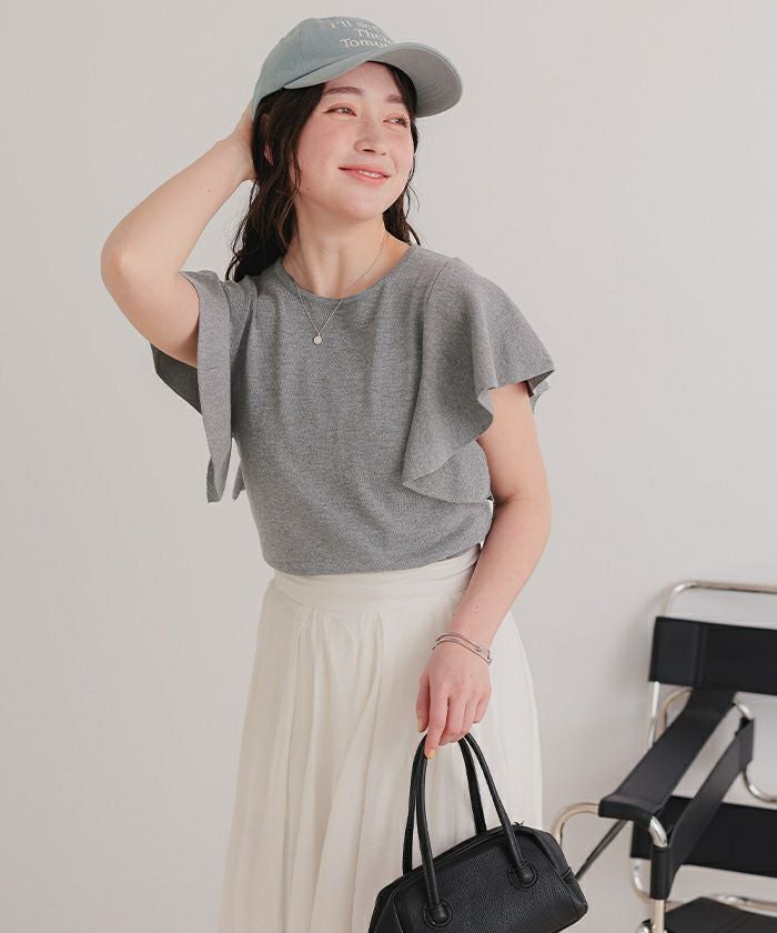 ・袖にあしらったフレアデザインが、動くたびにやさしく揺れるニットトップス