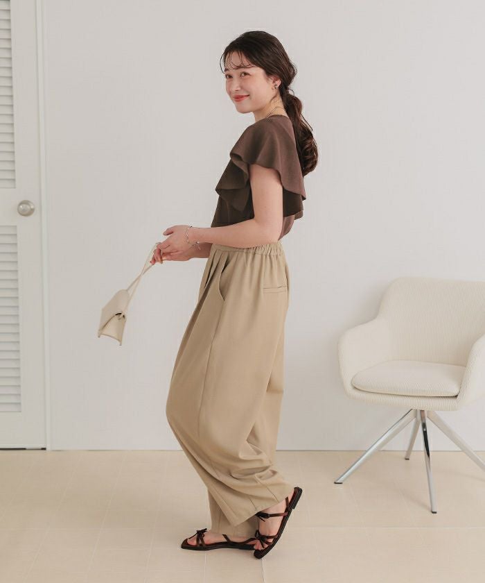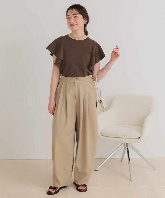 ・肩まわりをふんわり包み込むシルエットで、気になる二の腕をさりげなくカバーしつつ、女性らしい印象を演出