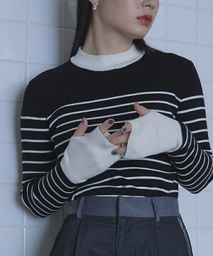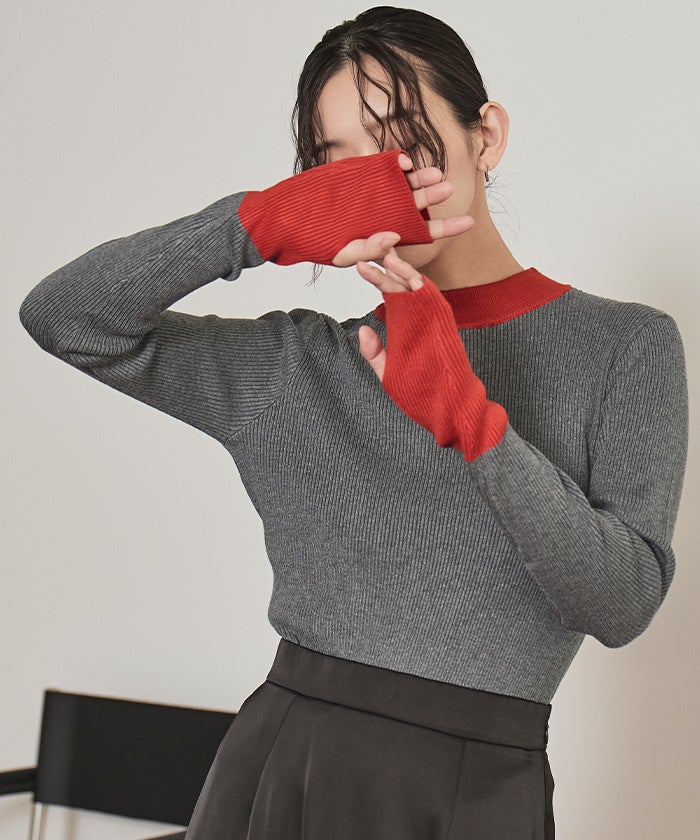 配色フィンガーリブニット【miette ミエット】【メール便可/90】