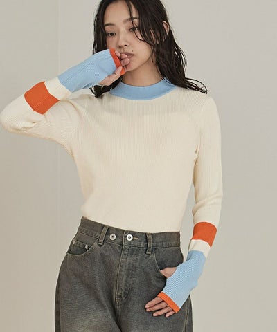 マルチ配色フィンガーリブニット【miette ミエット】【メール便可/100】