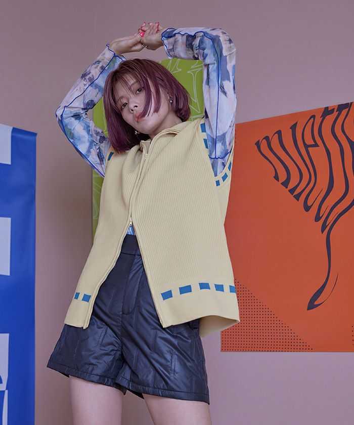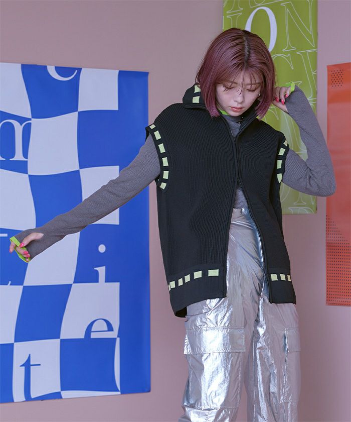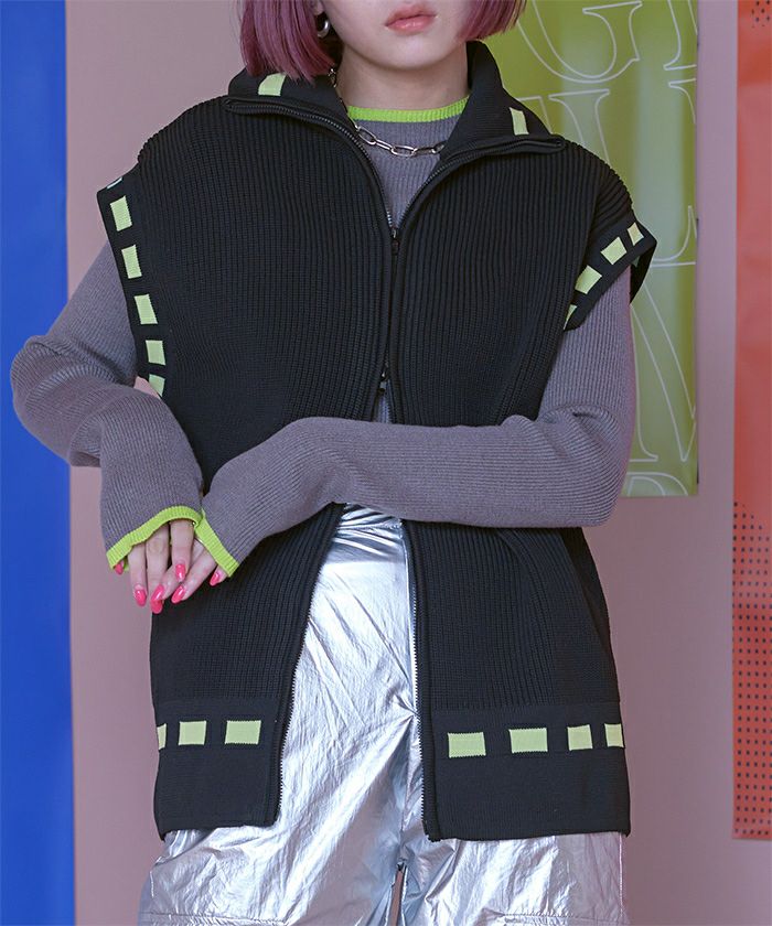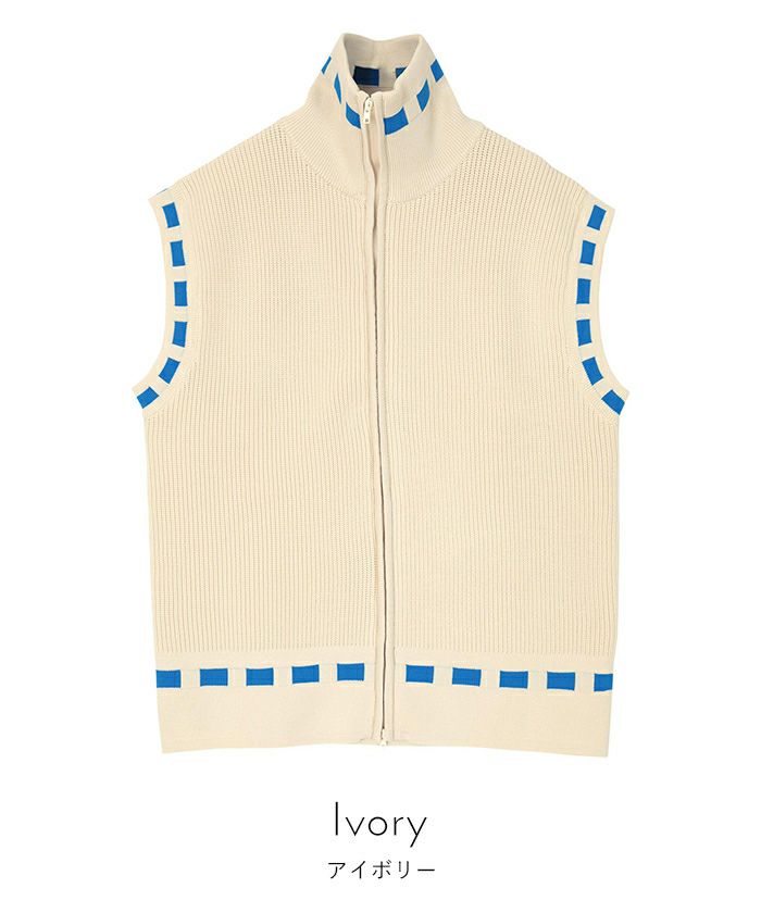 ステッチ風フロントジップハイネックベスト【miette ミエット】