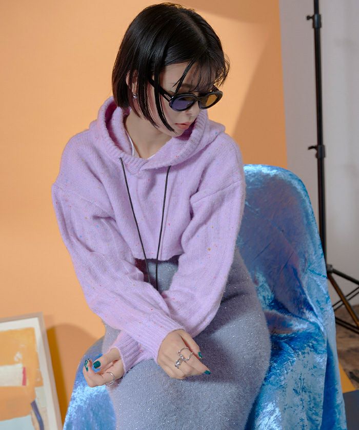 ・カラフルなネップが入った糸を使用したニットパーカー。