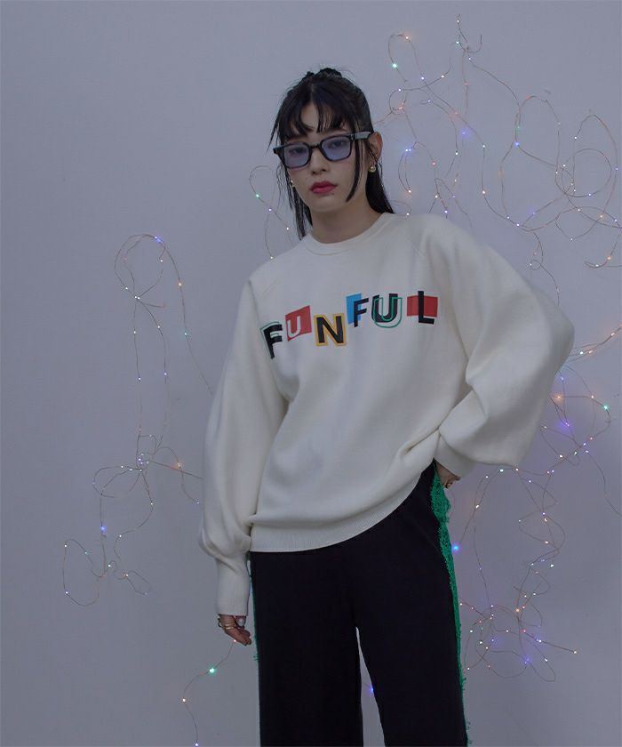 ・カラフルなラバープリントがポイントのニットトップス。